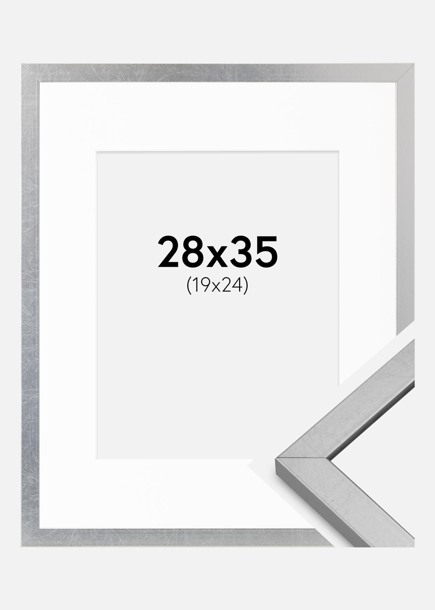 Rahmen Minerva Silber 28x35 cm - Passepartout Weiß 20x25 cm