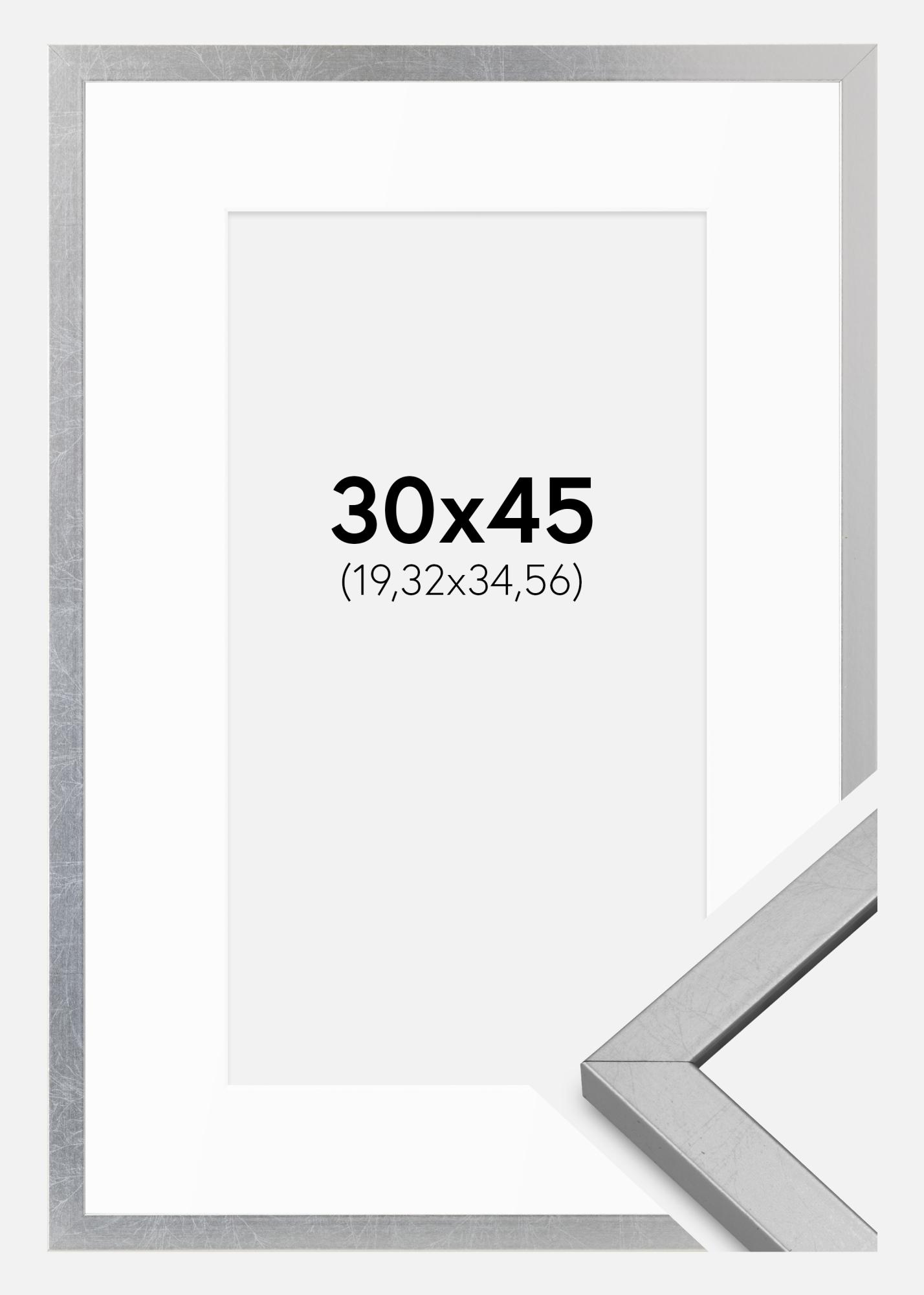 Rahmen Minerva Silber 30x45 cm - Passepartout Weiß 8x14 inches
