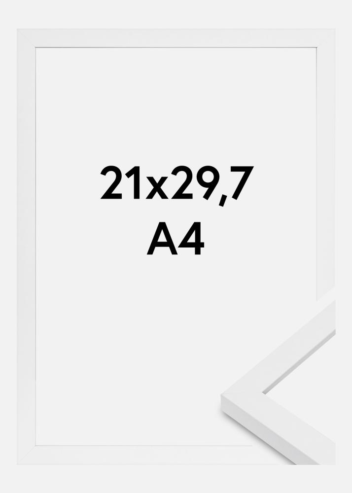 Geben Sie Ihren Lieblingsbildern die Aufmerksamkeit, die sie verdienen, mit unserem eleganten weißen Bilderrahmen. Mit einer Größe von 21x29,7 cm (A4) ist dieser Rahmen perfekt geeignet, um Ihre A4-Kunstwerke oder wichtigen Dokumente in Szene zu setzen. Der schlanke Rahmenrand, der 14 mm breit ist, ergänzt das Bild, ohne dabei die Aufmerksamkeit davon abzulenken, und verleiht jedem Raum einen stilvollen Eindruck.