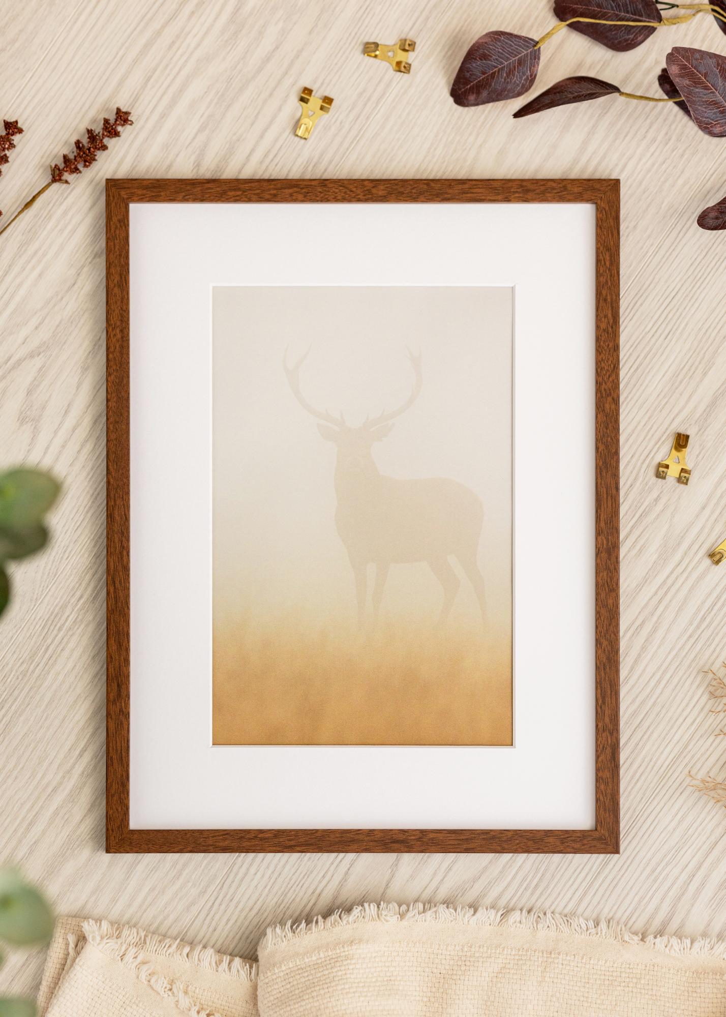 Dieser elegante braune Rahmen mit Passepartout ist perfekt, um Ihre Lieblingsbilder hervorzuheben. Mit einer Bildgröße von 30x40 cm und einem weißen Passepartout wird eine schöne Rahmung geschaffen, die Ihrem Motiv zusätzliche Tiefe und Fokus verleiht. Das Passepartout schützt Ihr Bild auch davor, direkt mit dem Glas in Kontakt zu kommen, was Schäden verhindern und die Bildqualität im Laufe der Zeit bewahren kann.