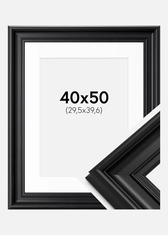Rahmen Mora Premium Schwarz 40x50 cm - Passepartout Weiß 12x16 inches