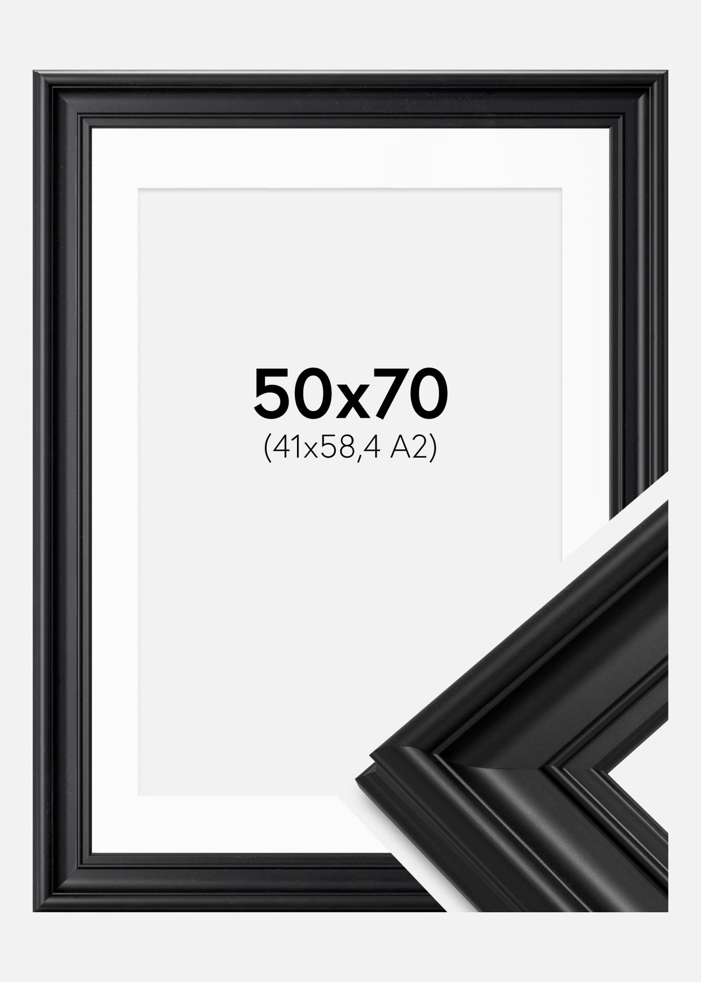 Rahmen Mora Premium Schwarz 50x70 cm - Passepartout Weiß 42x59,4 cm (A2)