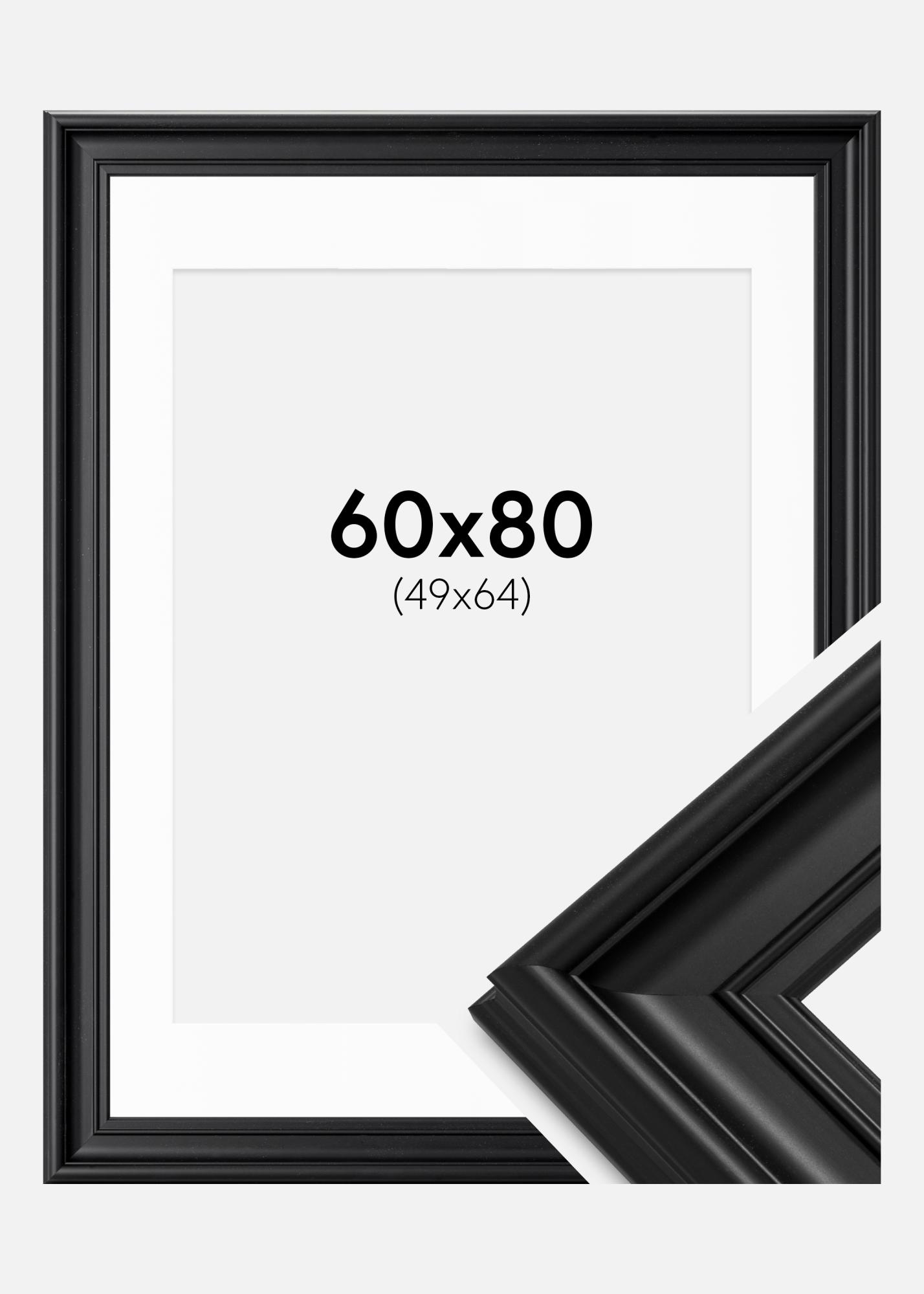 Rahmen Mora Premium Schwarz 60x80 cm - Passepartout Weiß 50x65 cm