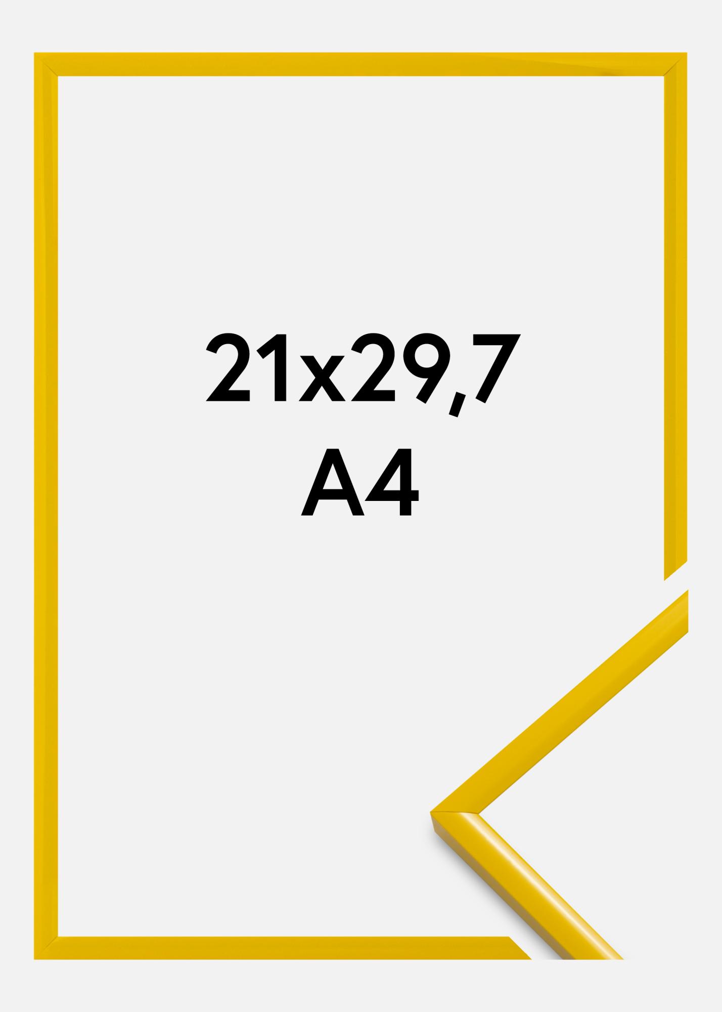 Der Bilderrahmen New Lifestyle Acrylglas Gelb ist ein schöner Bilderrahmen, besonders für farbenfrohe, farbstarke Bilder. Der gelbe Farbton dieses Bilderrahmens harmoniert gut mit blauen, grünen, roten Farbnuancen, ja eigentlich mit so gut wie allen Farben! Dieser Bilderrahmen setzt nicht nur deine Bilder gekonnt in Szene, sondern macht auch selbst ein trendiges Wohnaccessoire aus, das einen Hauch von Freude verbreiten oder für einen fröhlich wirkenden Farbakzent sorgen kann. Dieser Bilderrahmen besitzt eine schmale Bilderrahmenleiste von 9mm, die sich durch ein leicht gerundetes Profil auszeichnet. Auf der Rückseite des Rahmens befindet sich eine Halterung, um den Bilderrahmen entweder hochkant oder quer an der Wand aufzuhängen. Die Bilderrahmenrückwand wird von beweglichen Metallclips gehalten und kann einfach gelöst werden, um das Bild einzulegen.