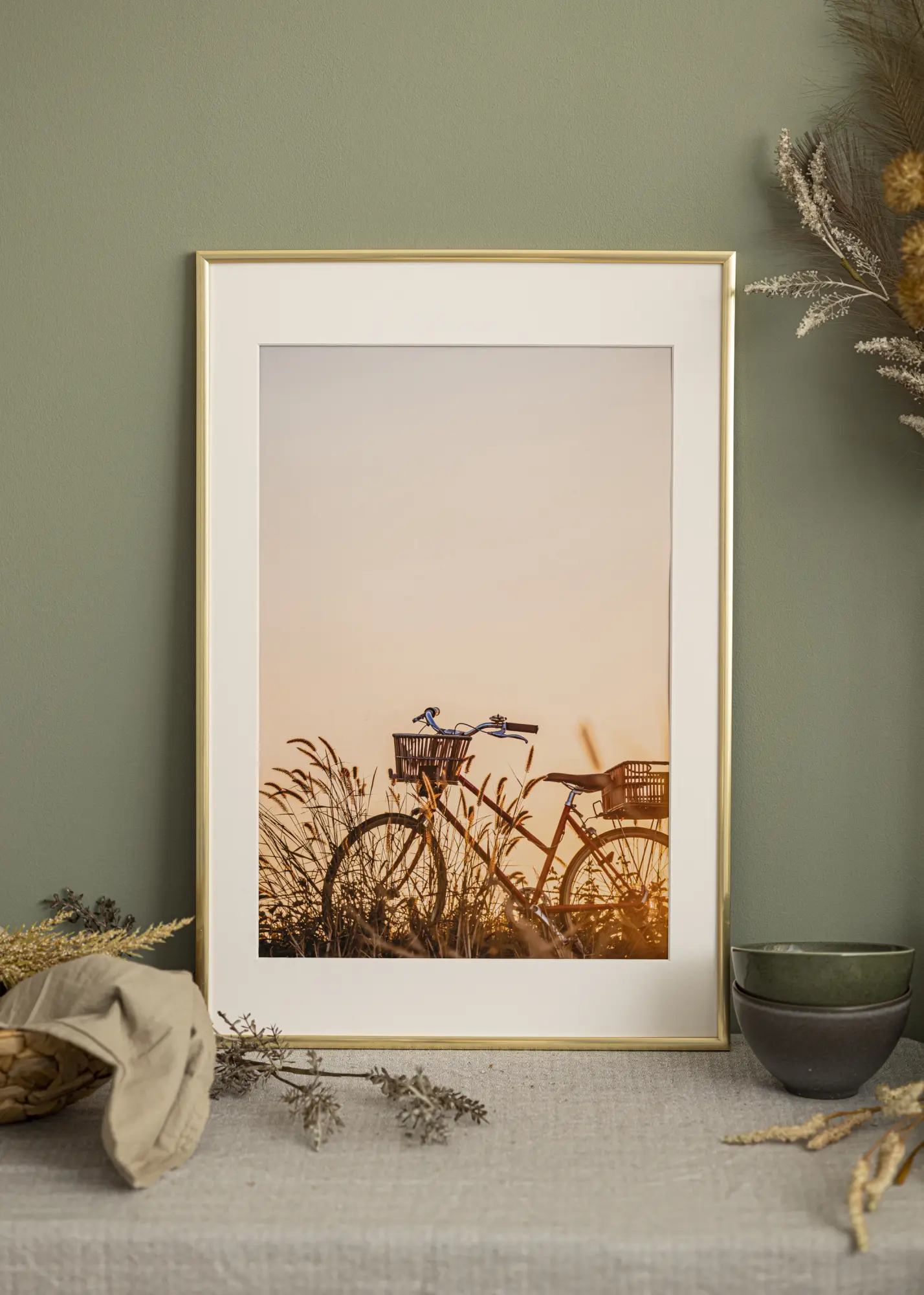 Ein goldener Bilderrahmen mit glänzendem Finish ist immer eine schöne Einrahmung, ganz gleich ob er im Kinderzimmer oder im Wohnzimmer, z.B. als Teil einer persönlichen Bilderwand, aufgehängt werden soll. Ein Goldrahmen wirkt immer stilvoll. Das Bilderrahmenmodell New Lifestyle Acrylglas Shiny Gold zeichnet sich durch seine schmale Bilderrahmenleiste mit leicht gerundetem Profil aus, das einmal mehr den eleganten Charakter dieses goldfarbenen Bilderrahmens betont und dein Bildmotiv stilsicher in Szene setzt. Die Bilderrahmenrückwand besteht aus MDF und wird von kleinen Drehklammern aus Metall gehalten. Um das Bild einzulegen, wird einfach die Rückwand durch Drehen der Metallklammern gelöst.