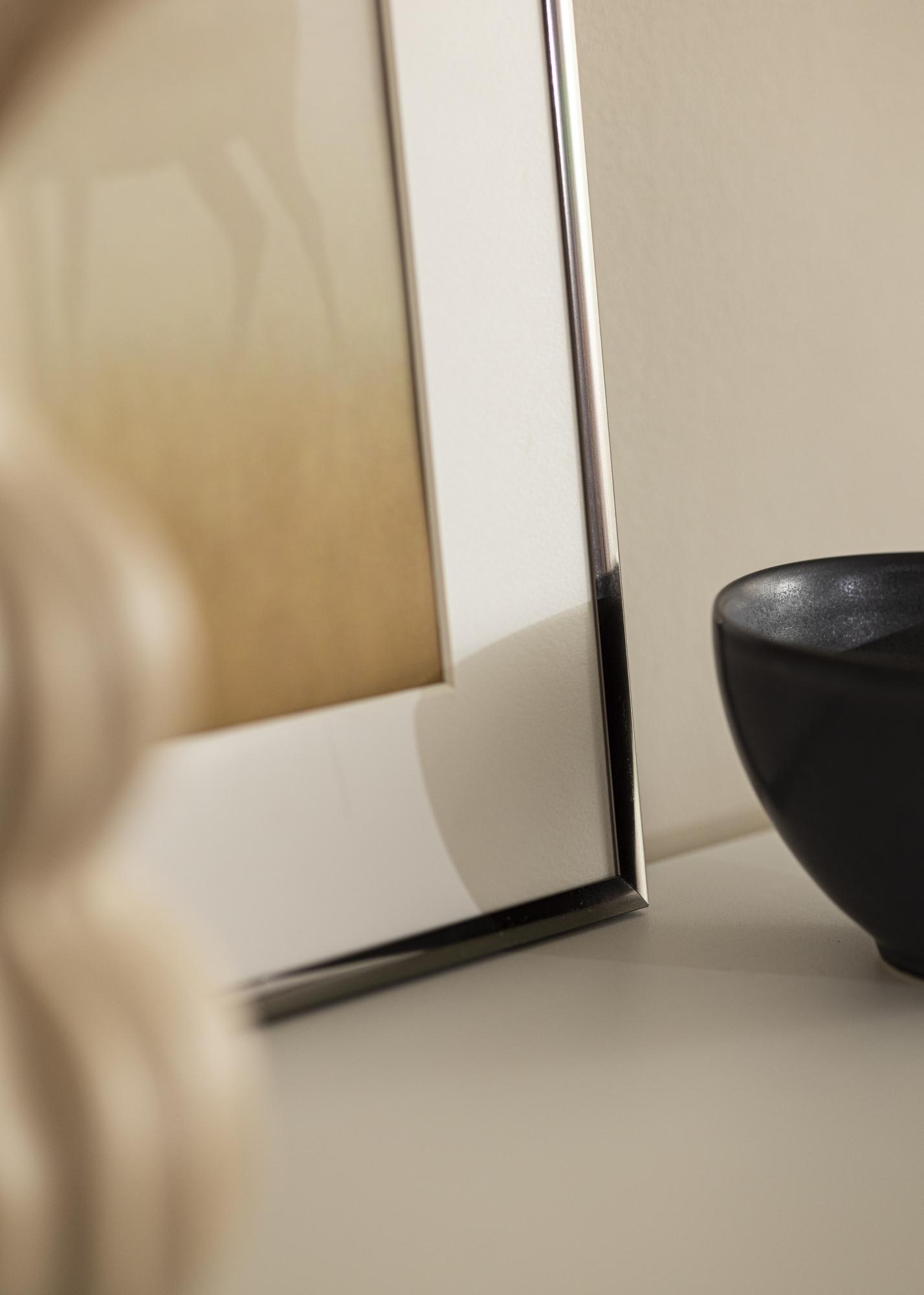 Dieser elegante Stahlrahmen hat eine glänzende Oberfläche und passt perfekt für Bilder in der Größe 8x10 cm. Die Breite des Rahmens beträgt 9 mm und die Tiefe 14 mm, was eine stilvolle Einrahmung ergibt.
