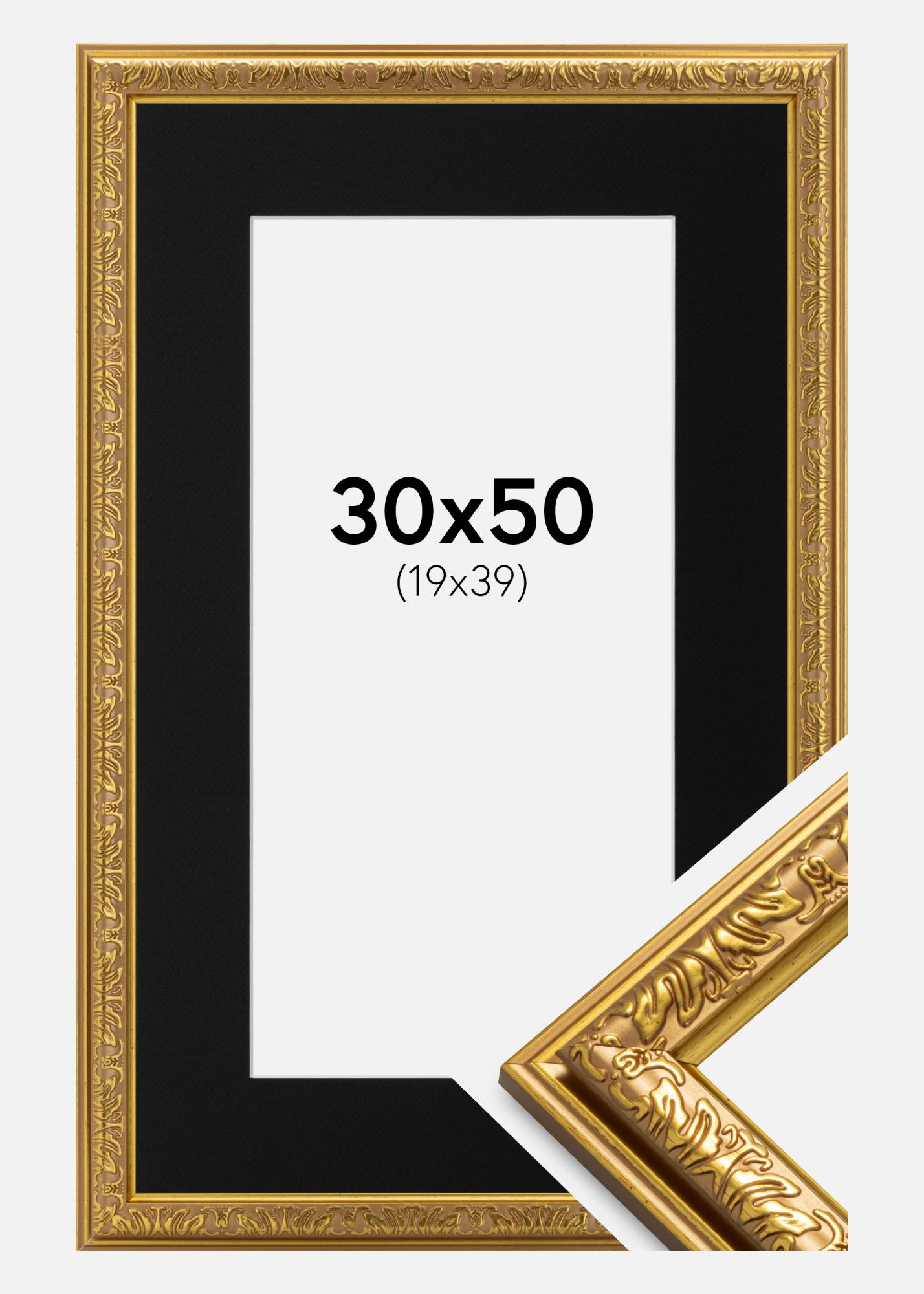 Rahmen Nostalgia Gold 30x50 cm - Passepartout Schwarz 20x40 cm