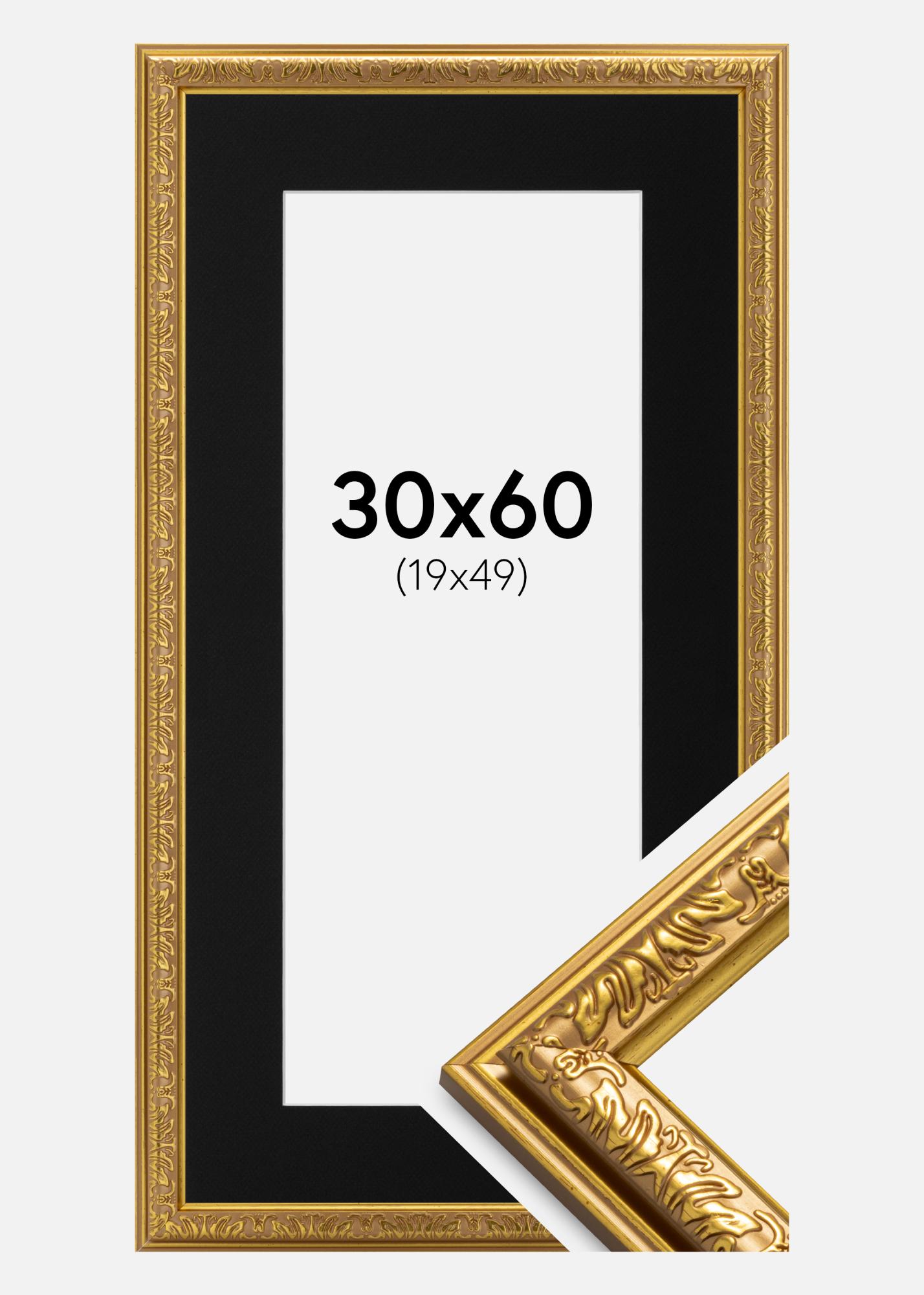 Rahmen Nostalgia Gold 30x60 cm - Passepartout Schwarz 20x50 cm