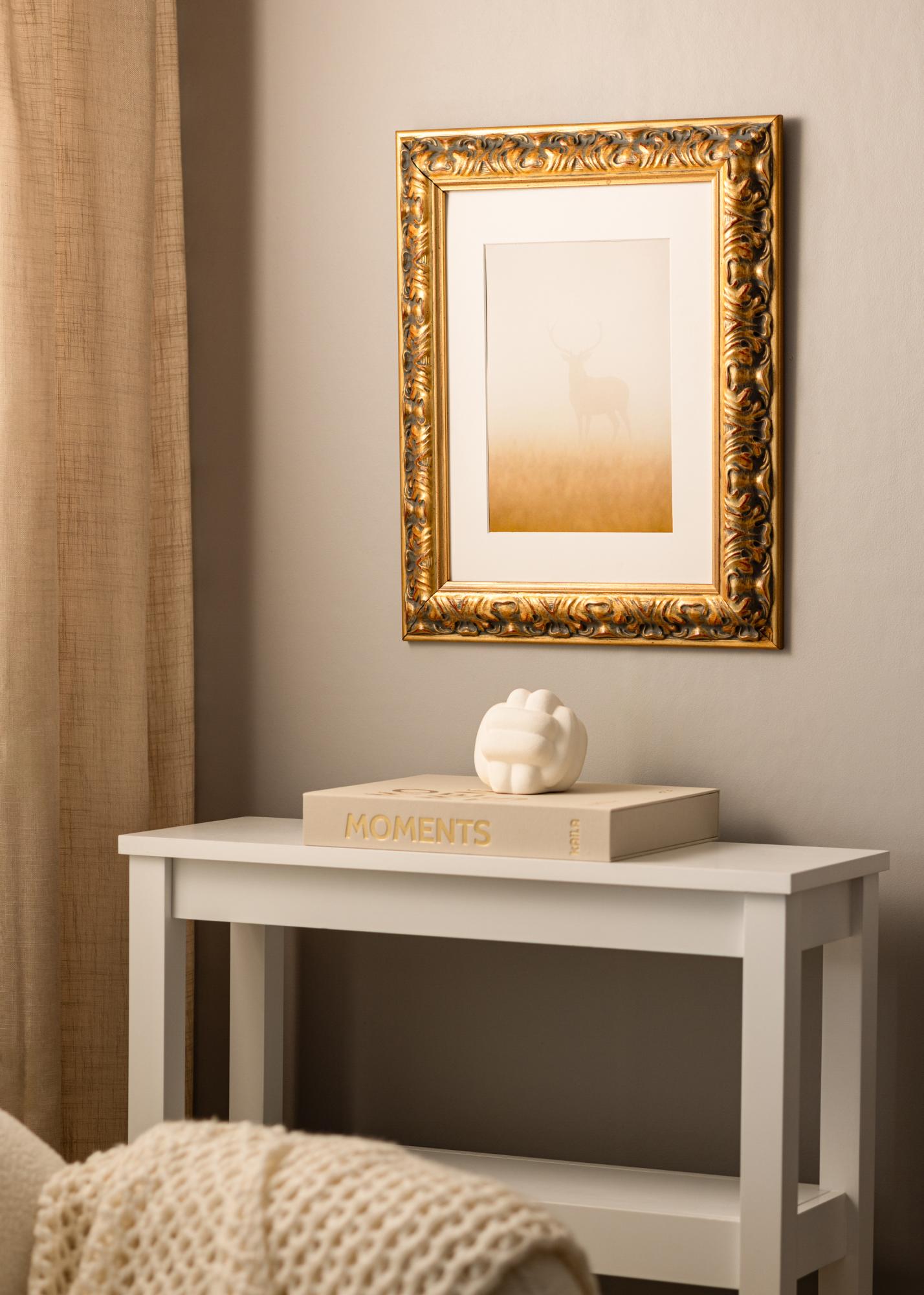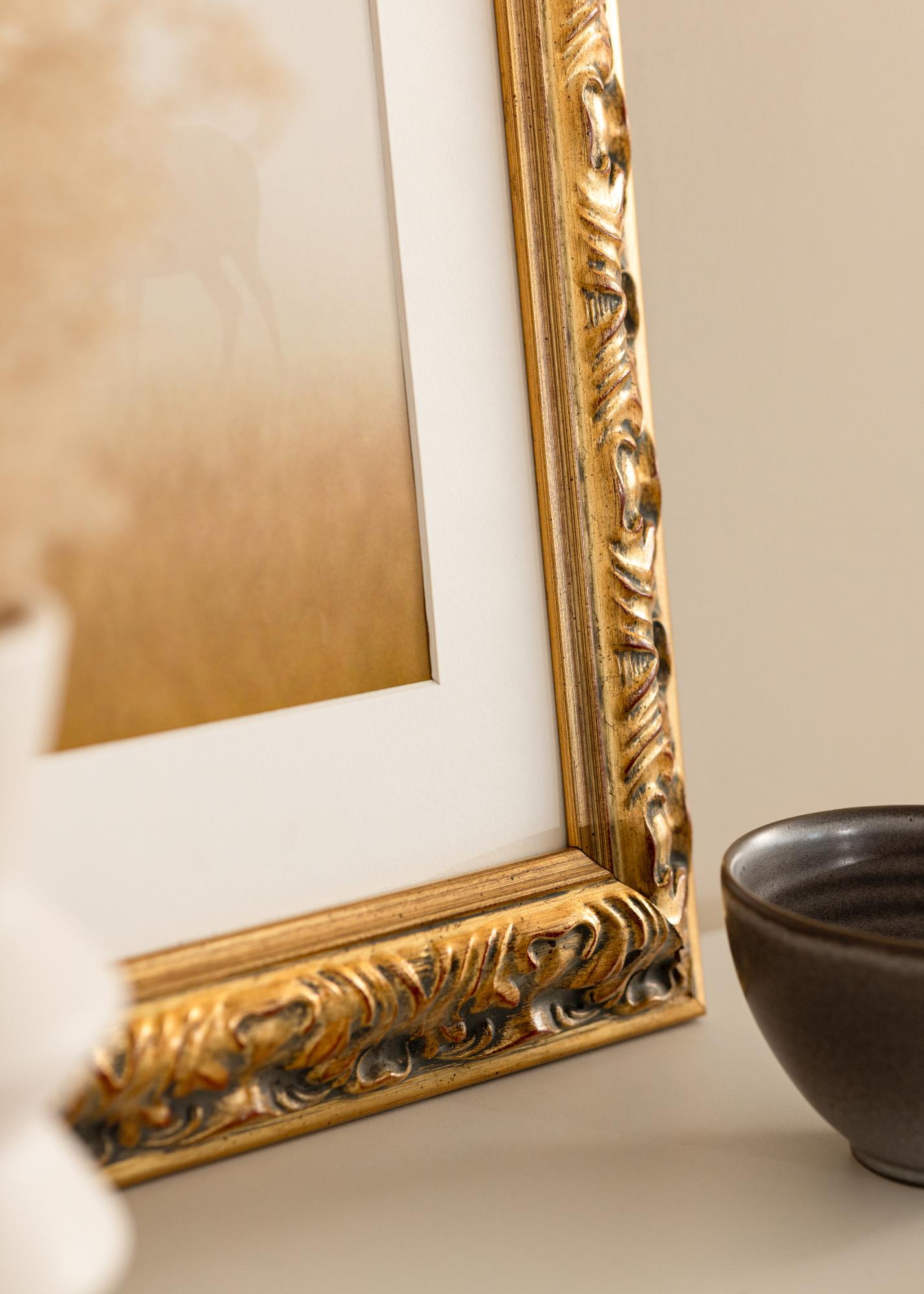Unabhängig davon, ob Sie ein Familienfoto, ein Kunstwerk oder einen Spiegel rahmen möchten, wird dieser Bilderrahmen das Motiv auf beste Weise hervorheben. Der verzierte Goldrahmen mit seinen Barockdetails wird zu einer schönen Umrahmung, die die Blicke auf sich zieht und ein anspruchsvolles Ambiente in Ihrem Zuhause schafft. Wählen Sie den Rahmen Odin Gold/Rot, um Ihren Bildern die Umrahmung zu geben, die sie verdienen.