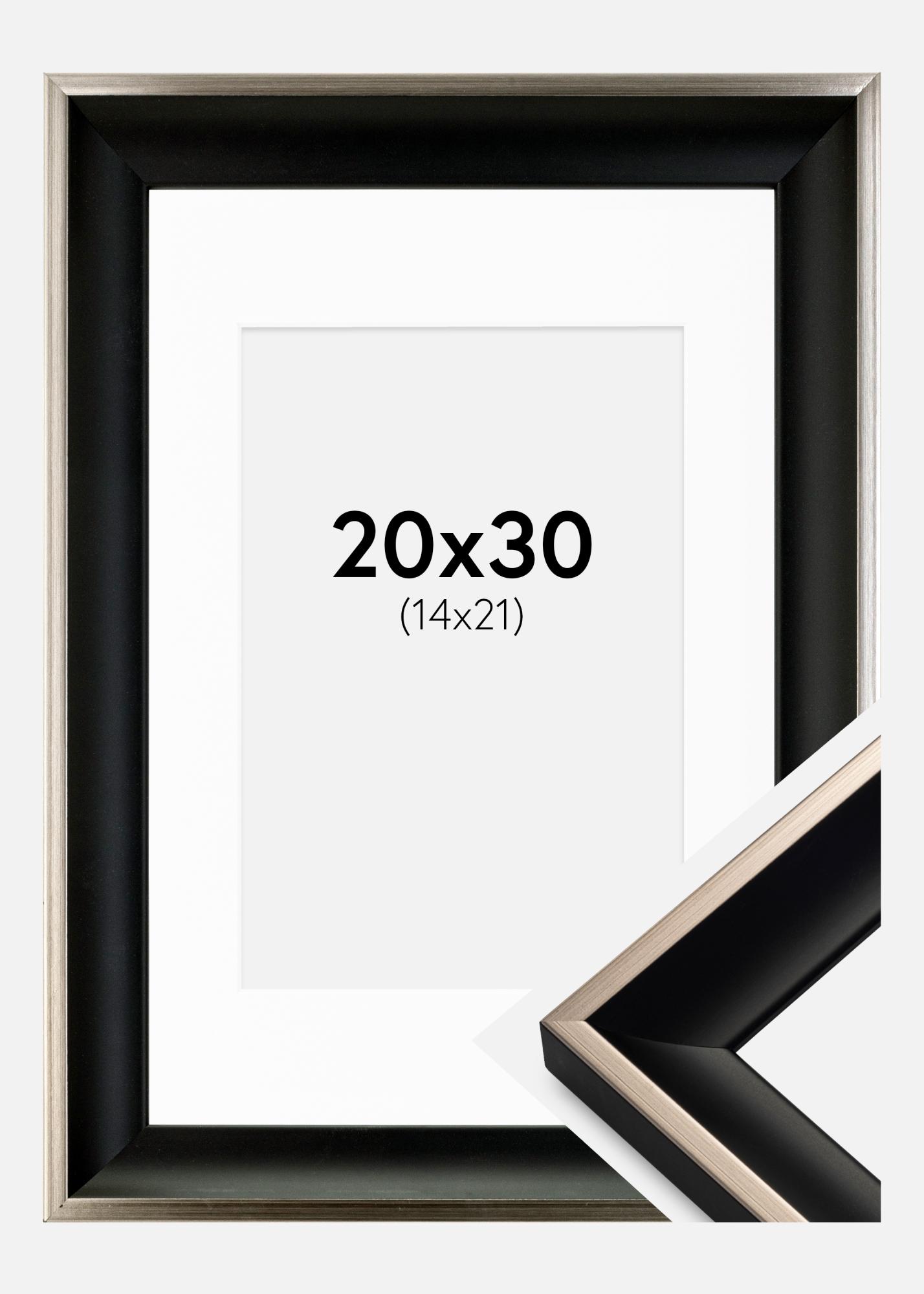 Rahmen Öjaren Schwarz-Silber 20x30 cm - Passepartout Weiß 15x22 cm