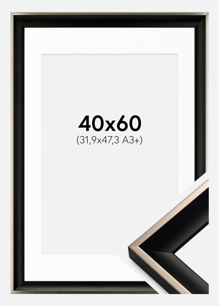 Rahmen Öjaren Schwarz-Silber 40x60 cm - Passepartout Weiß 32,9x48,3 cm (A3+)