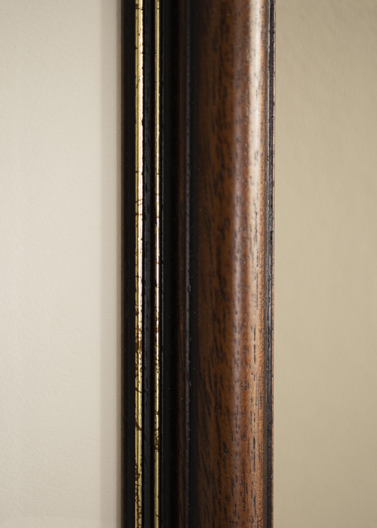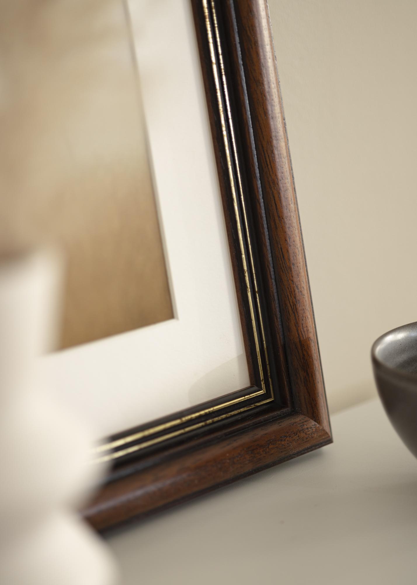 Bilderrahmen aus Holz, braun, mit eleganten Goldlinien