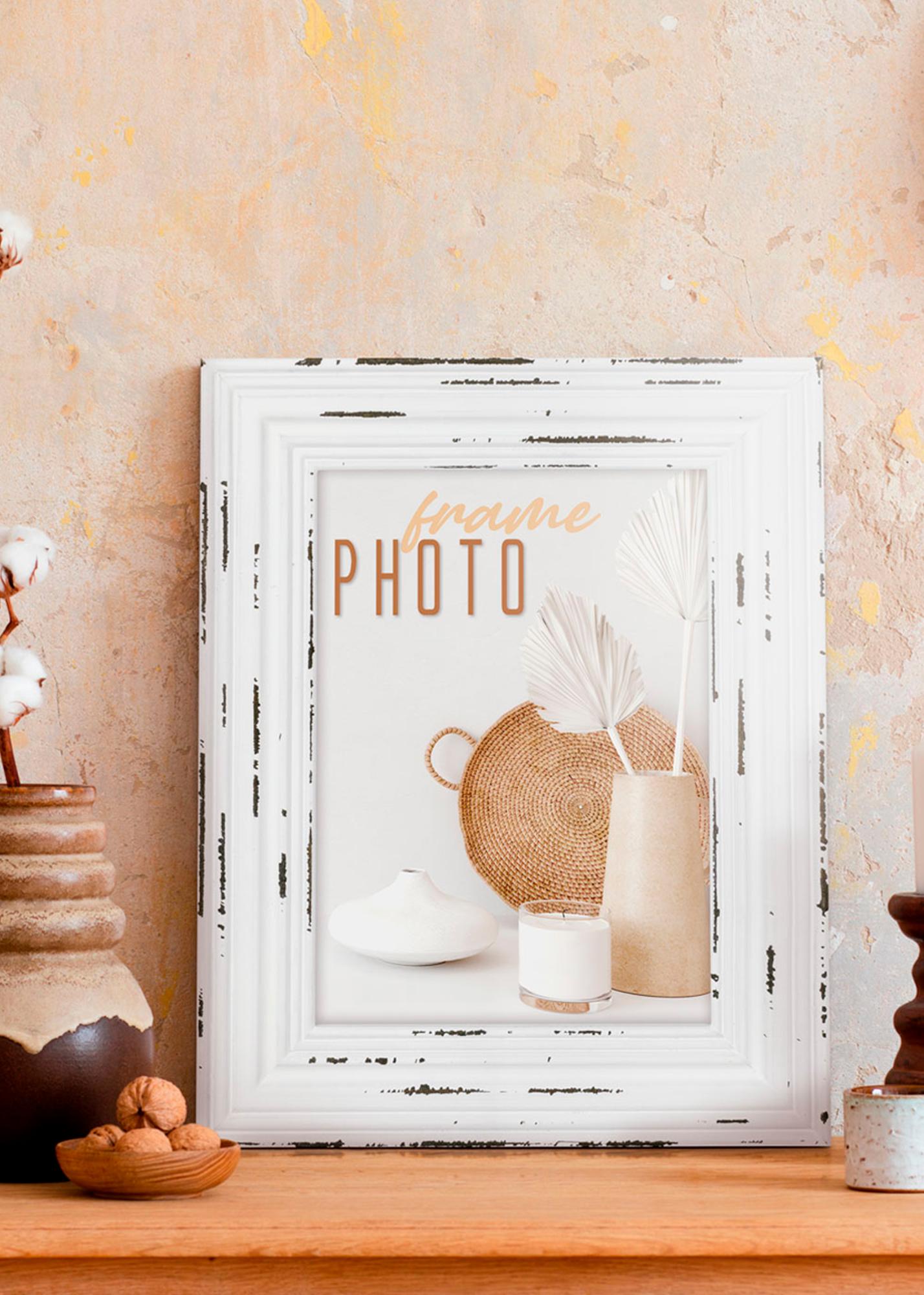 Geben Sie Ihren Lieblingsbildern eine einzigartige Rahmung mit diesem charmanten Fotorahmen im Vintage-Stil. Mit seinen abgenutzten weißen Flächen und dunklen Akzenten verleiht der Rahmen Ihrem Zuhause ein Gefühl von antiker Eleganz. Die Größe von 13x18 cm ist ideal, um sowohl Porträts als auch Landschaftsbilder hervorzuheben.