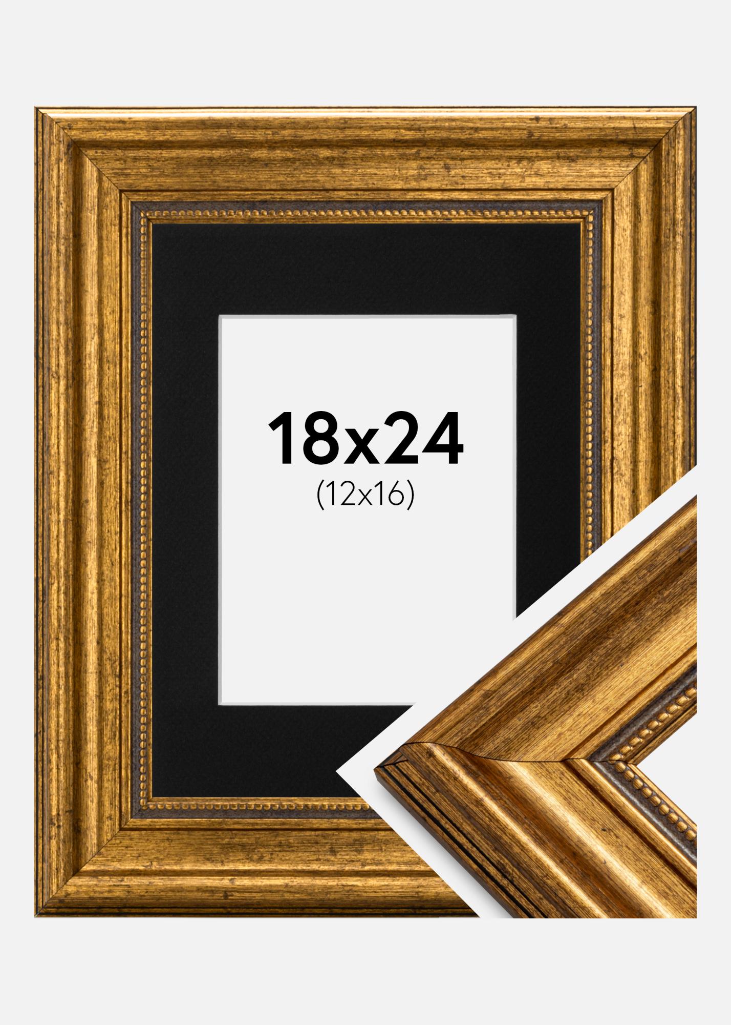Rahmen Rokoko Gold 18x24 cm - Passepartout Schwarz 13x17 cm