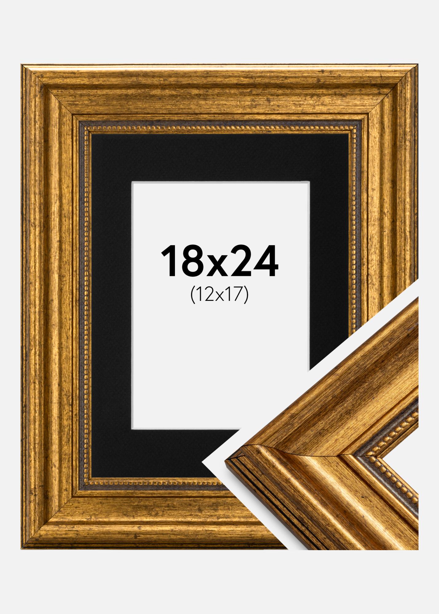 Rahmen Rokoko Gold 18x24 cm - Passepartout Schwarz 13x18 cm