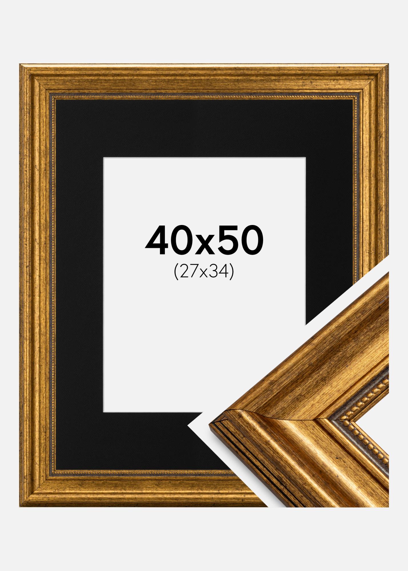 Rahmen Rokoko Gold 40x50 cm - Passepartout Schwarz 28x35 cm