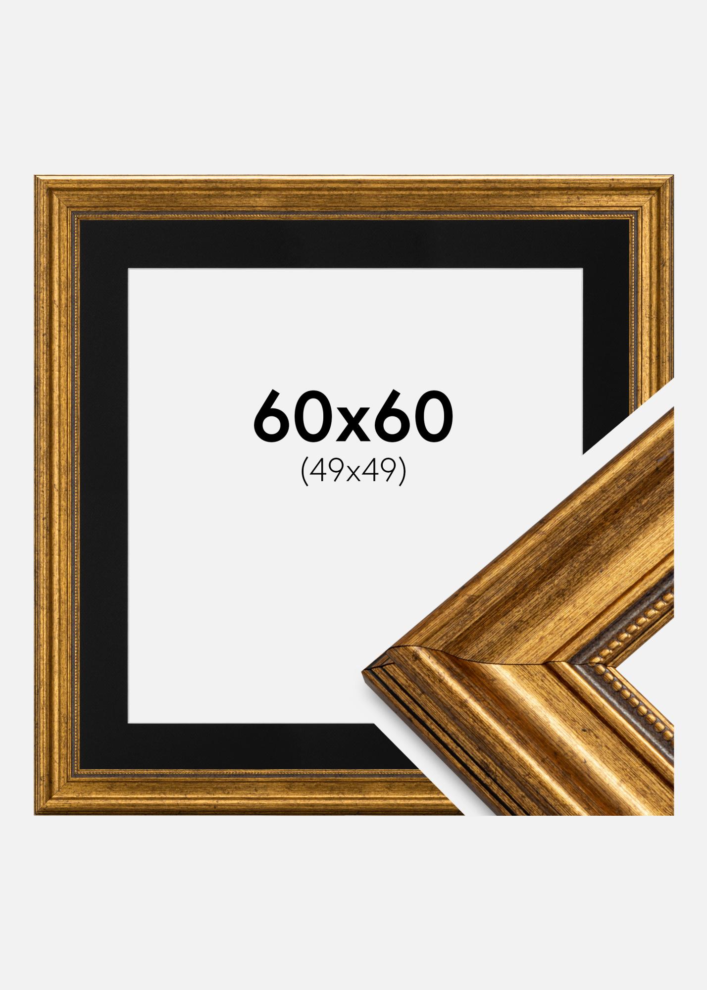 Rahmen Rokoko Gold 60x60 cm - Passepartout Schwarz 50x50 cm