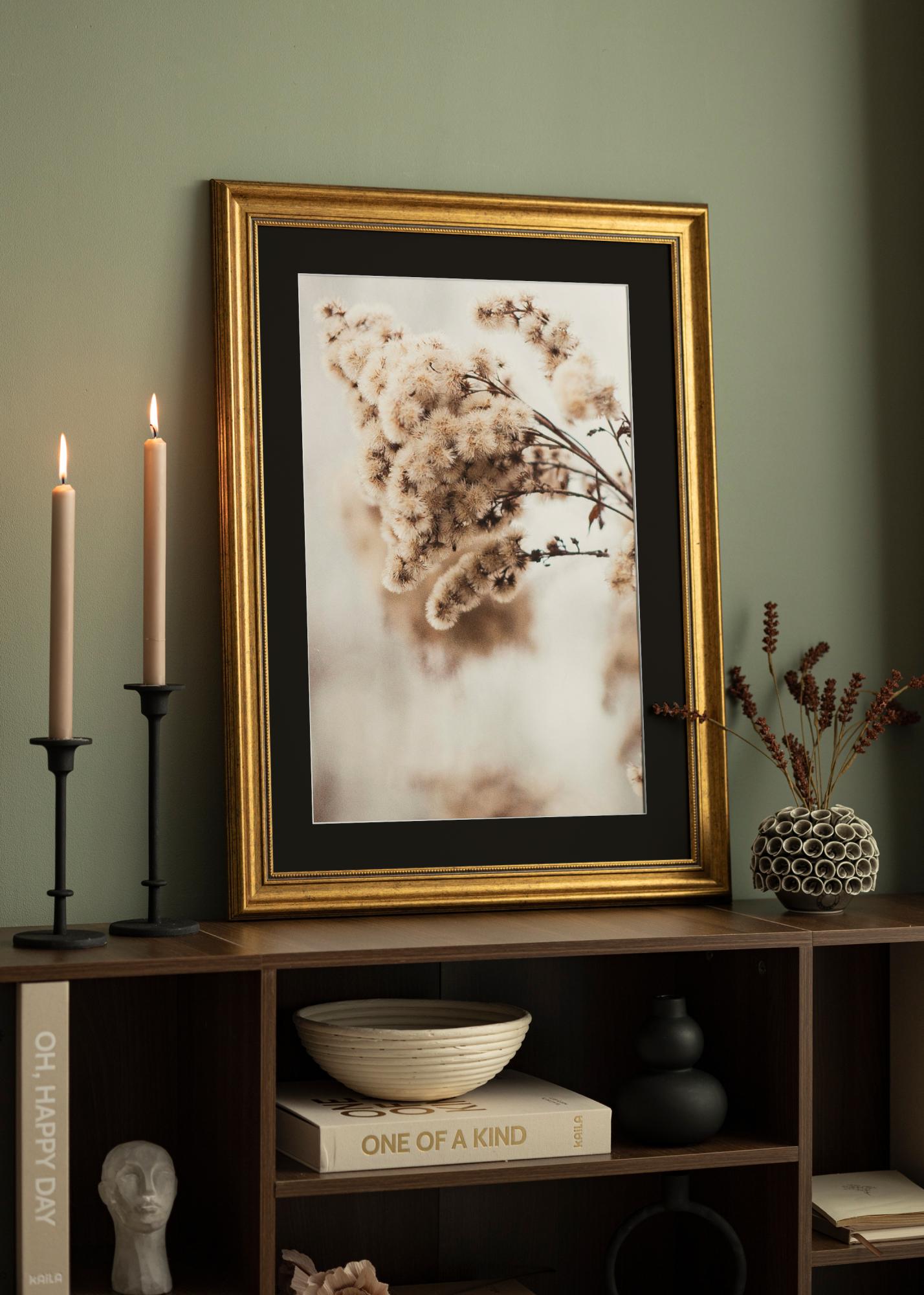 Rahmen Rokoko Gold 70x90 cm - Passepartout Schwarz 60x80 cm