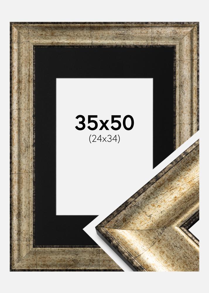 Rahmen Saltsjöbaden Antik-Gold 35x50 cm - Passepartout Schwarz 25x35 cm