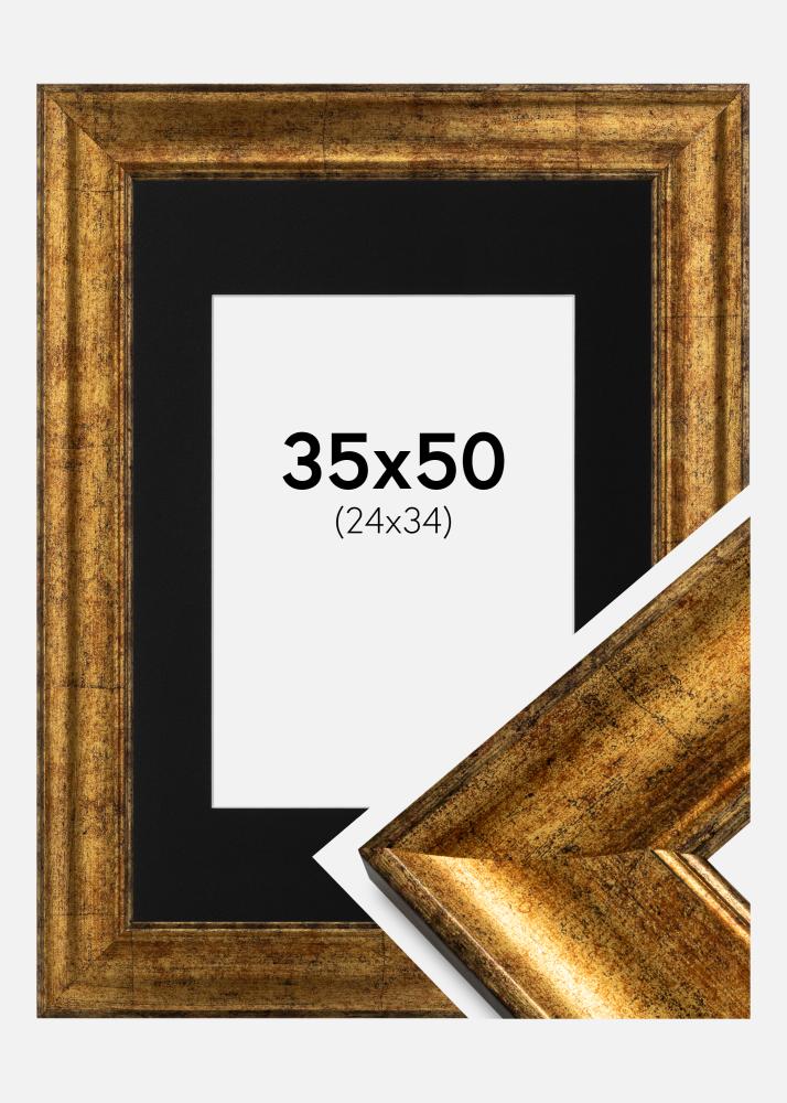 Rahmen Saltsjöbaden Gold 35x50 cm - Passepartout Schwarz 25x35 cm
