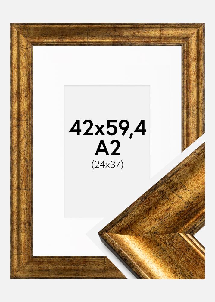 Rahmen Saltsjöbaden Gold 42x59,4 cm (A2) - Passepartout Weiß 25x38 cm
