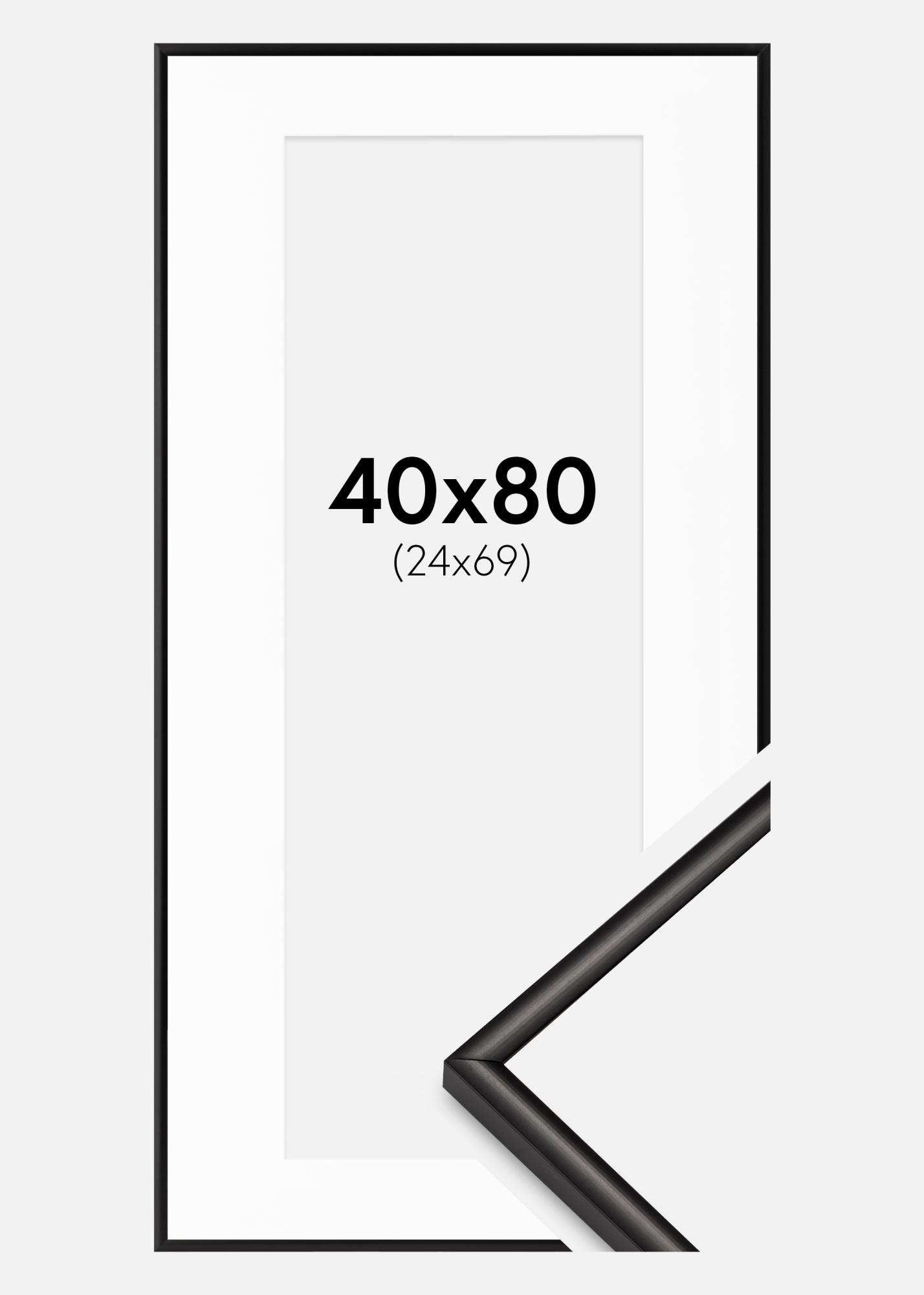 Dieser elegante schwarze Rahmen mit Passepartout ist perfekt, um Ihre Lieblingsbilder der Größe 25x70 cm hervorzuheben. Mit einer schmalen Breite von 9,8 mm und einer Tiefe von 16 mm verleiht der Rahmen ein stilvolles und modernes Gefühl. Die matte Oberfläche ergänzt den weißen Passepartout, wodurch ein schöner Kontrast entsteht, der die Aufmerksamkeit auf das Motiv lenkt.