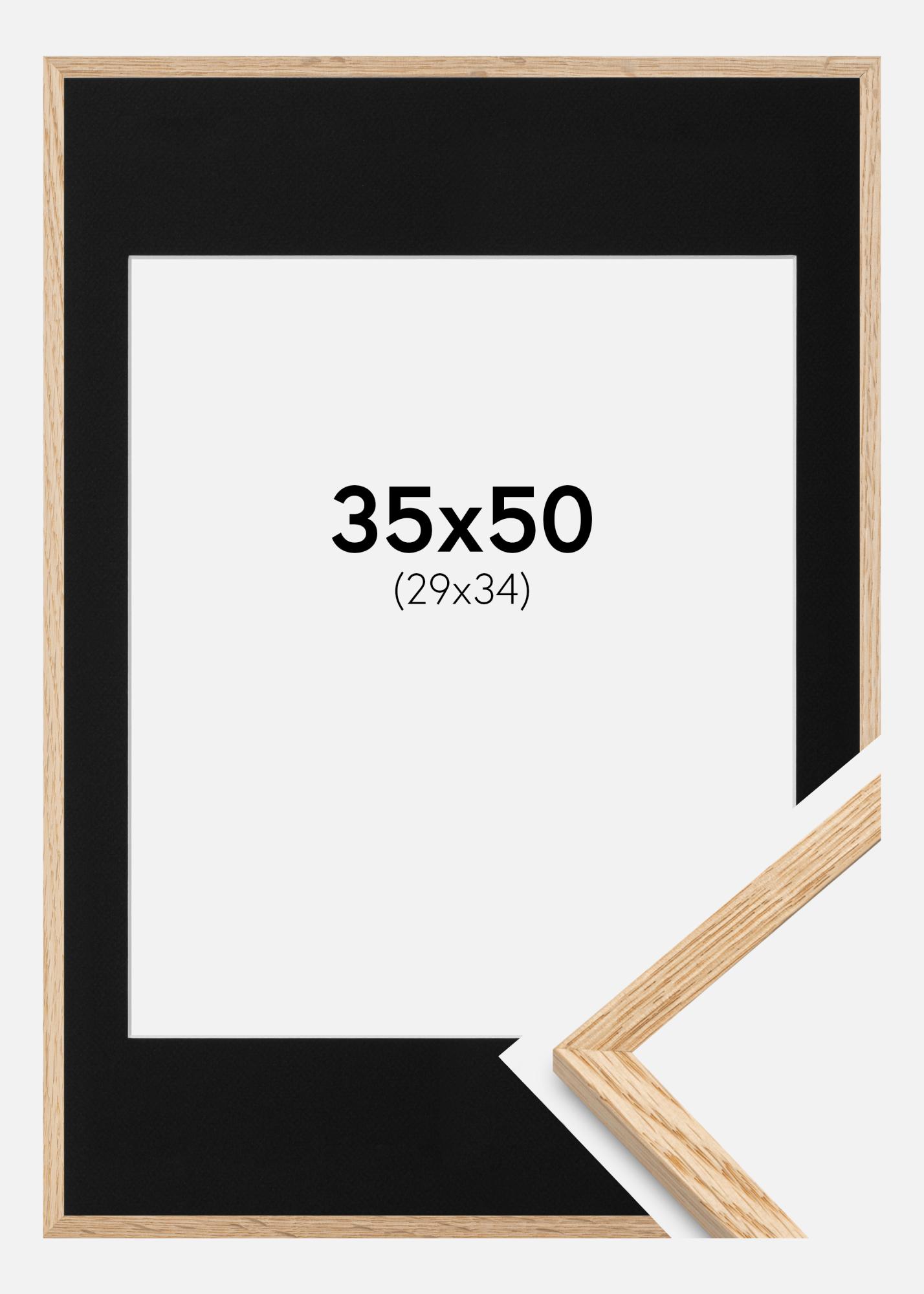 Rahmen Schmal Eiche 35x50 cm - Passepartout Schwarz 30x35 cm