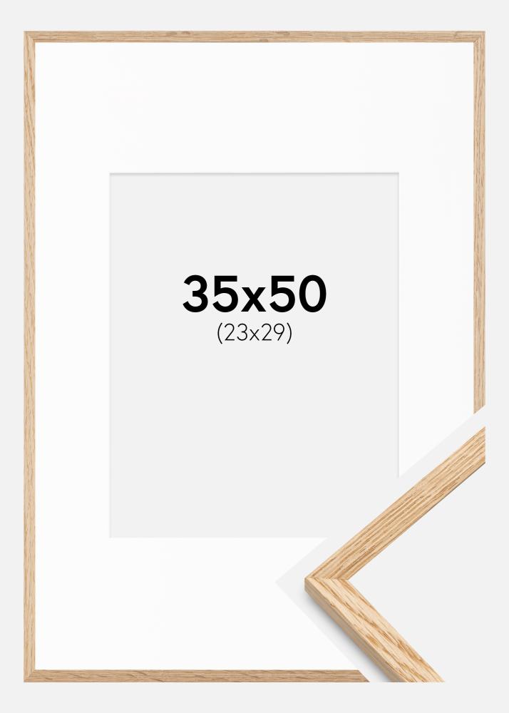 Rahmen Schmal Eiche 35x50 cm - Passepartout Weiß 24x30 cm