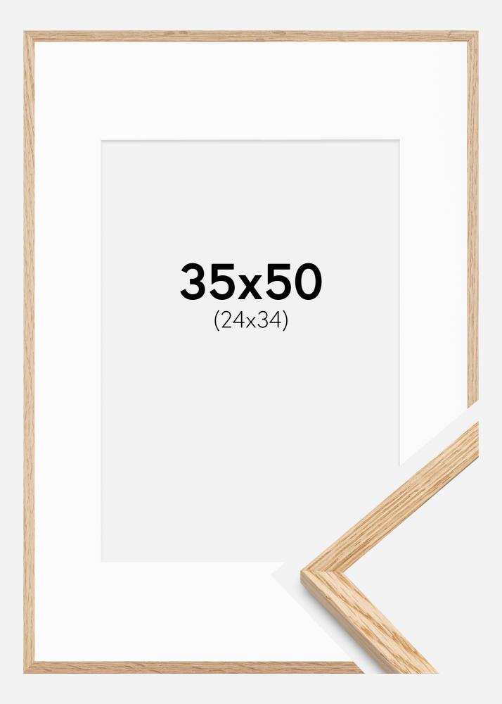 Rahmen Schmal Eiche 35x50 cm - Passepartout Weiß 25x35 cm
