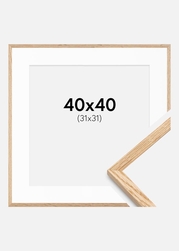 Rahmen Schmal Eiche 40x40 cm - Passepartout Weiß 32x32 cm