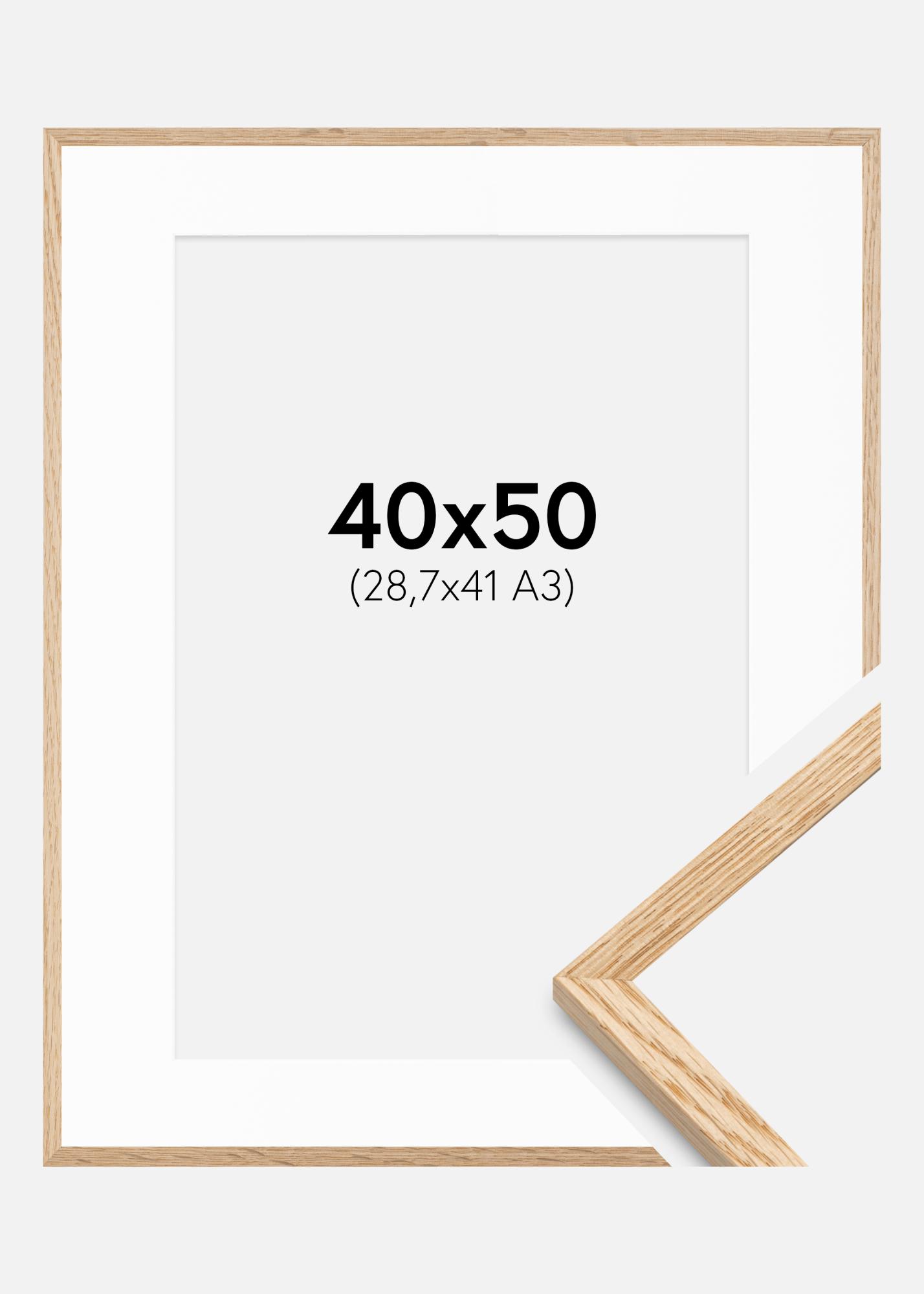 Rahmen Schmal Eiche 40x50 cm - Passepartout Weiß 29,7x42 cm (A3)