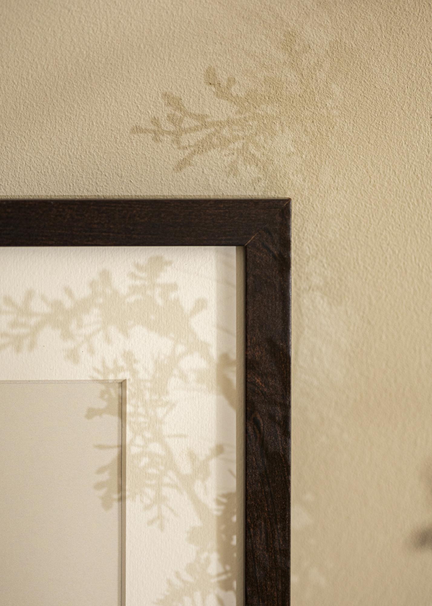 Dieser Bilderrahmen zeichnet sich durch seinen ansprechenden Walnuss-Farbton aus. Die etwas dunklere Farbgebung dieses schönen Bilderrahmens verleiht Schwarz-Weiß-Fotos oder Bildern mit Naturmotiven ein besonderes Flair und sorgt damit für eine stilsichere, dekorative Einrahmung. Befinden sich Möbel oder sonstige Einrichtungsgegenstände im Raum, die ebenfalls in Walnuss-Optik gehalten sind, fügt sich dieser Bilderrahmung einmal mehr harmonisch in das Interieur ein.
