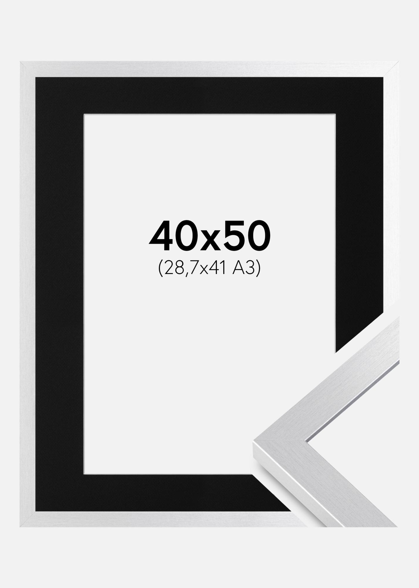 Rahmen Selection Silber 40x50 cm - Passepartout Schwarz 29,7x42 cm (A3)