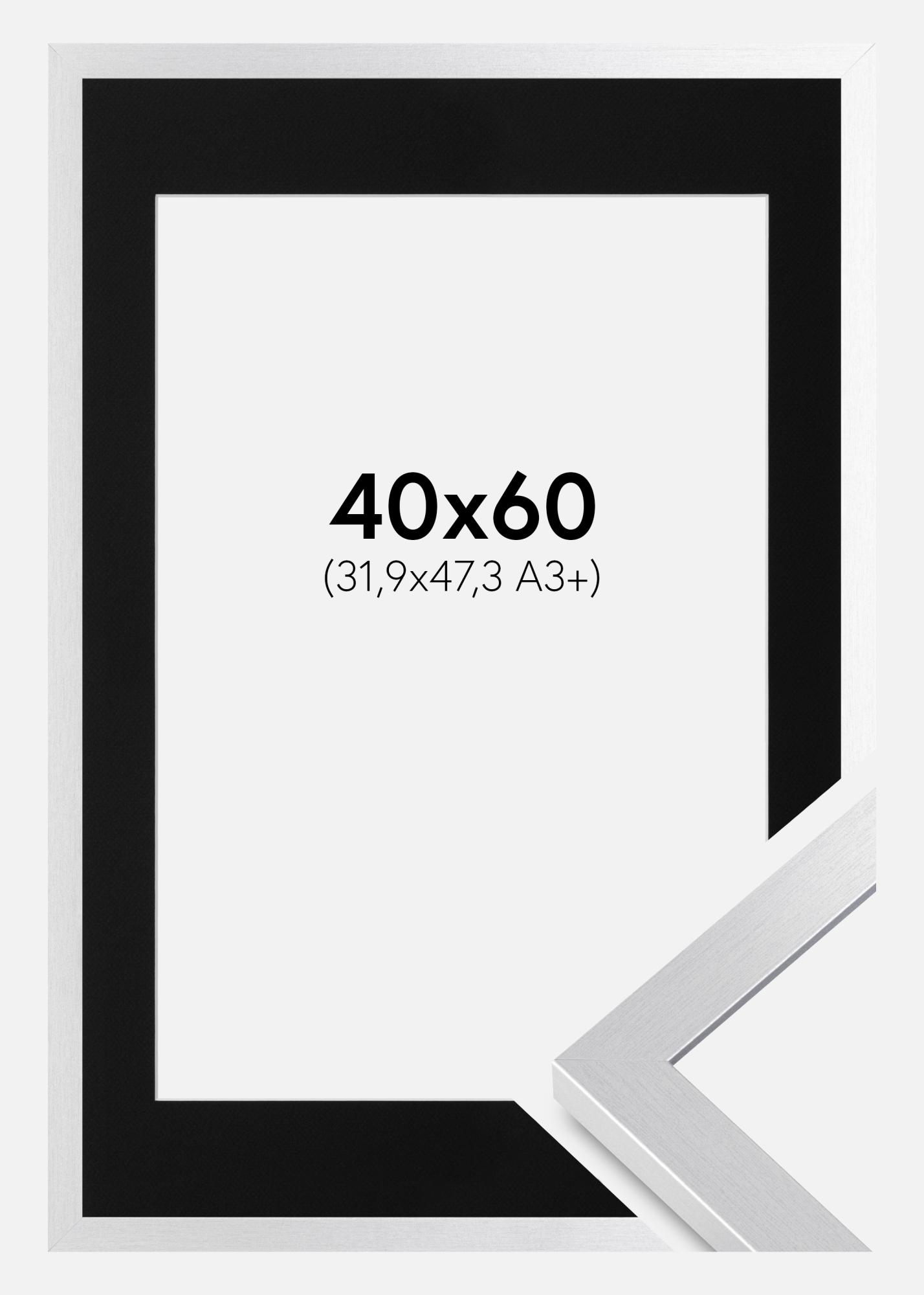 Rahmen Selection Silber 40x60 cm - Passepartout Schwarz 32,9x48,3 cm (A3+)