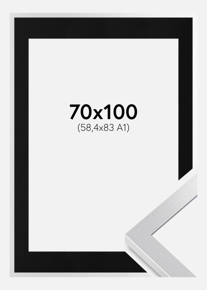 Rahmen Selection Silber 70x100 cm - Passepartout Schwarz 59,4x84 cm (A1)