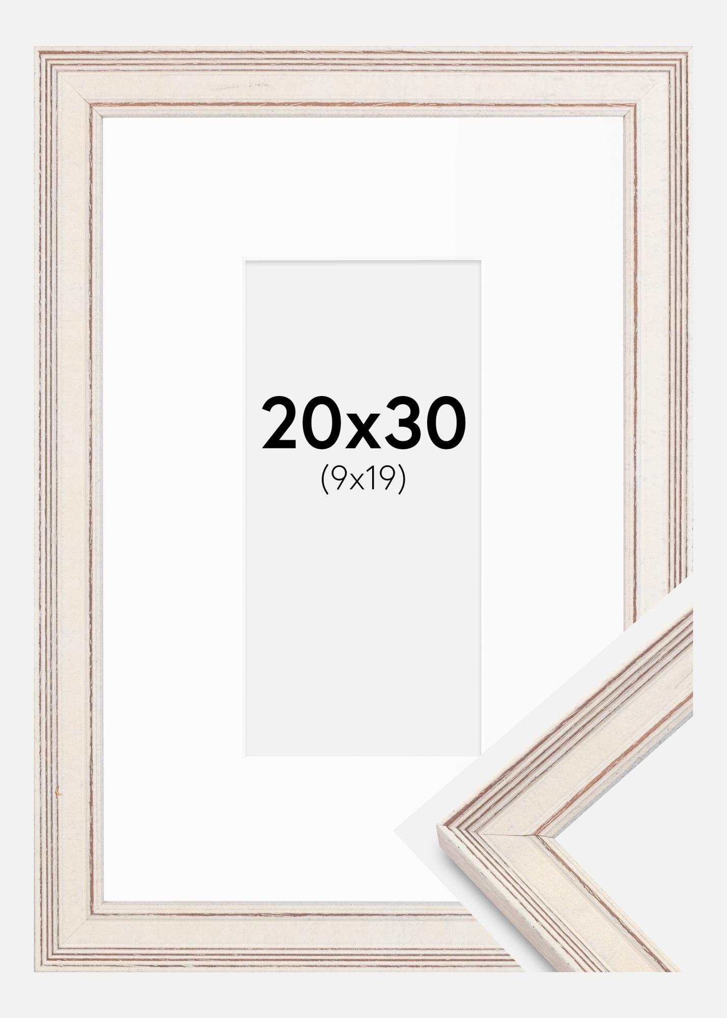 Rahmen Shabby Chic Weiß 20X30 cm - Passepartout Weiß 10x20 cm