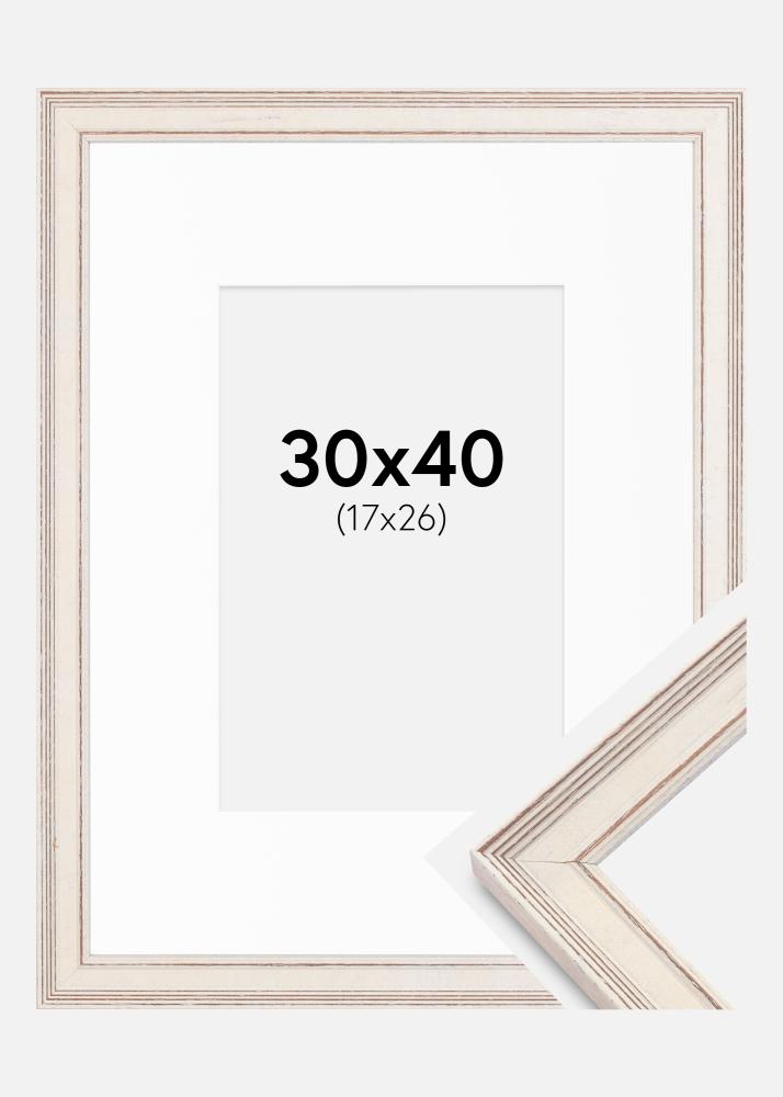 Rahmen Shabby Chic Weiß 30x40 cm - Passepartout Weiß 18x27 cm