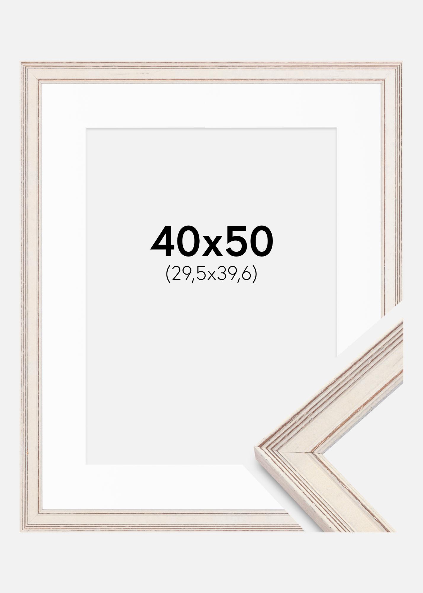Rahmen Shabby Chic Weiß 40x50 cm - Passepartout Weiß 12x16 inches