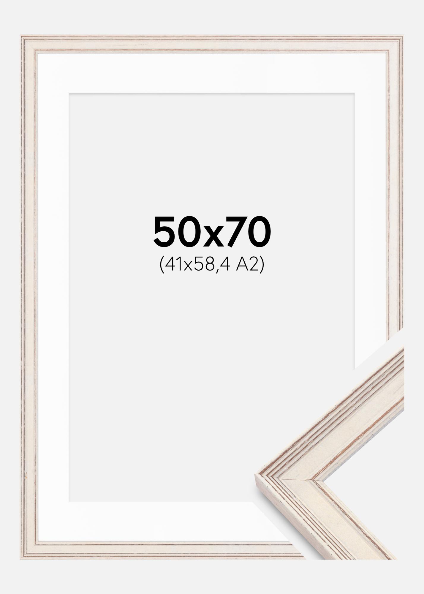 Rahmen Shabby Chic Weiß 50x70 cm - Passepartout Weiß 42x59,4 cm (A2)
