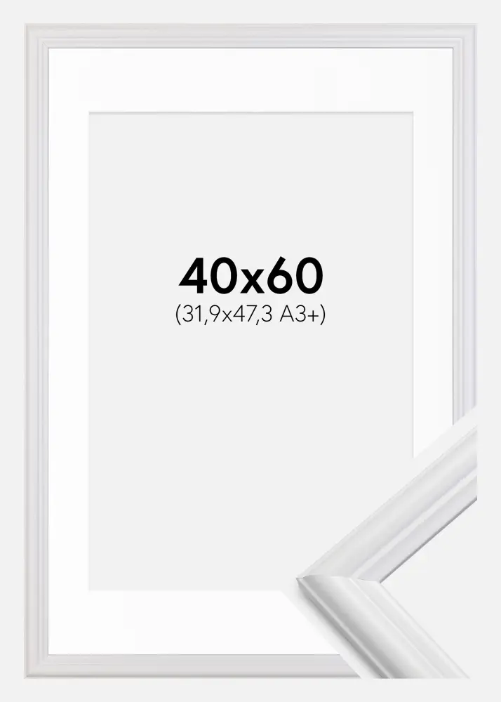 Rahmen Siljan Weiß 40x60 cm - Passepartout Weiß 32,9x48,3 cm (A3+)