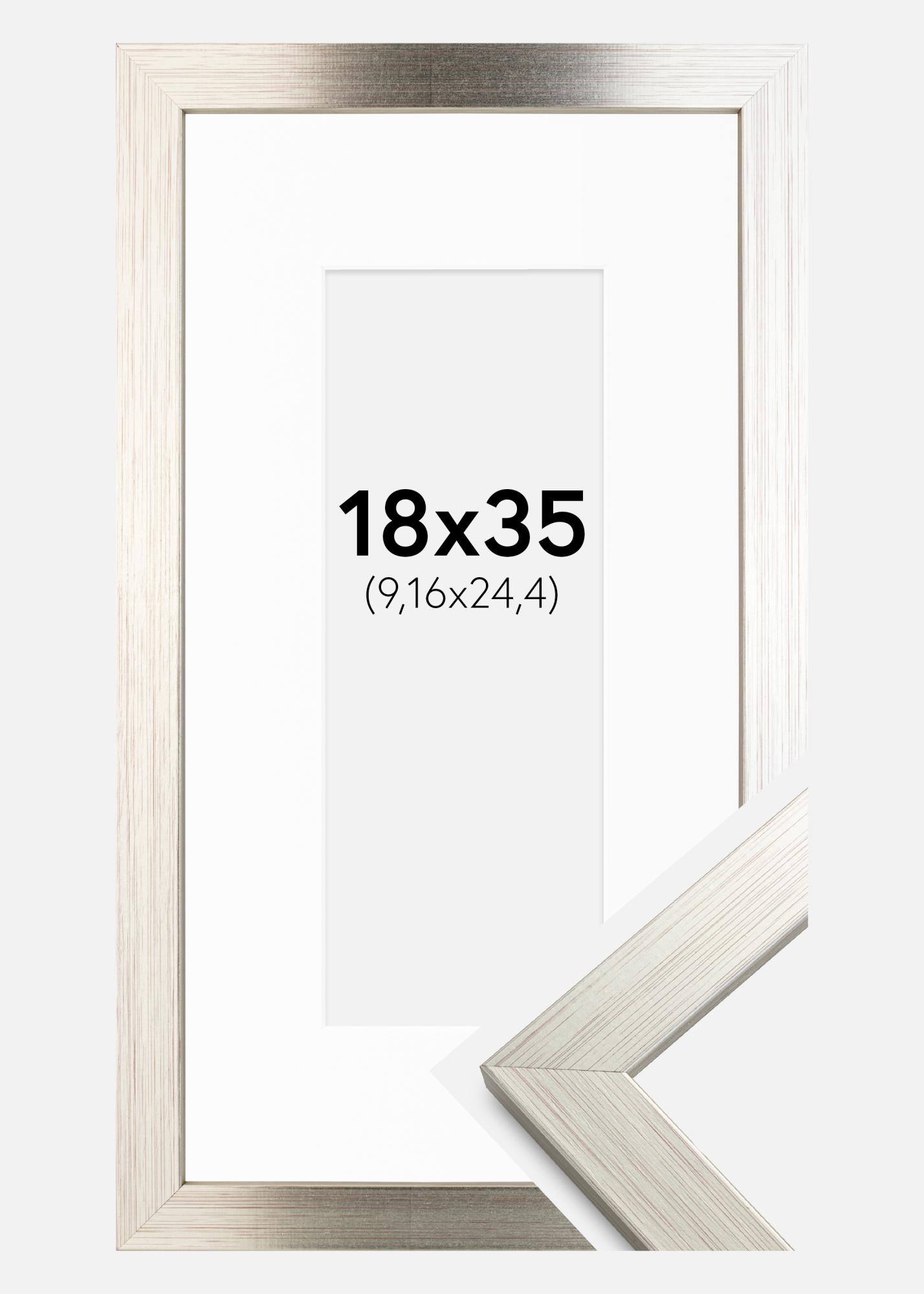Rahmen Silver Wood 18x35 cm - Passepartout Weiß 4x10 inches