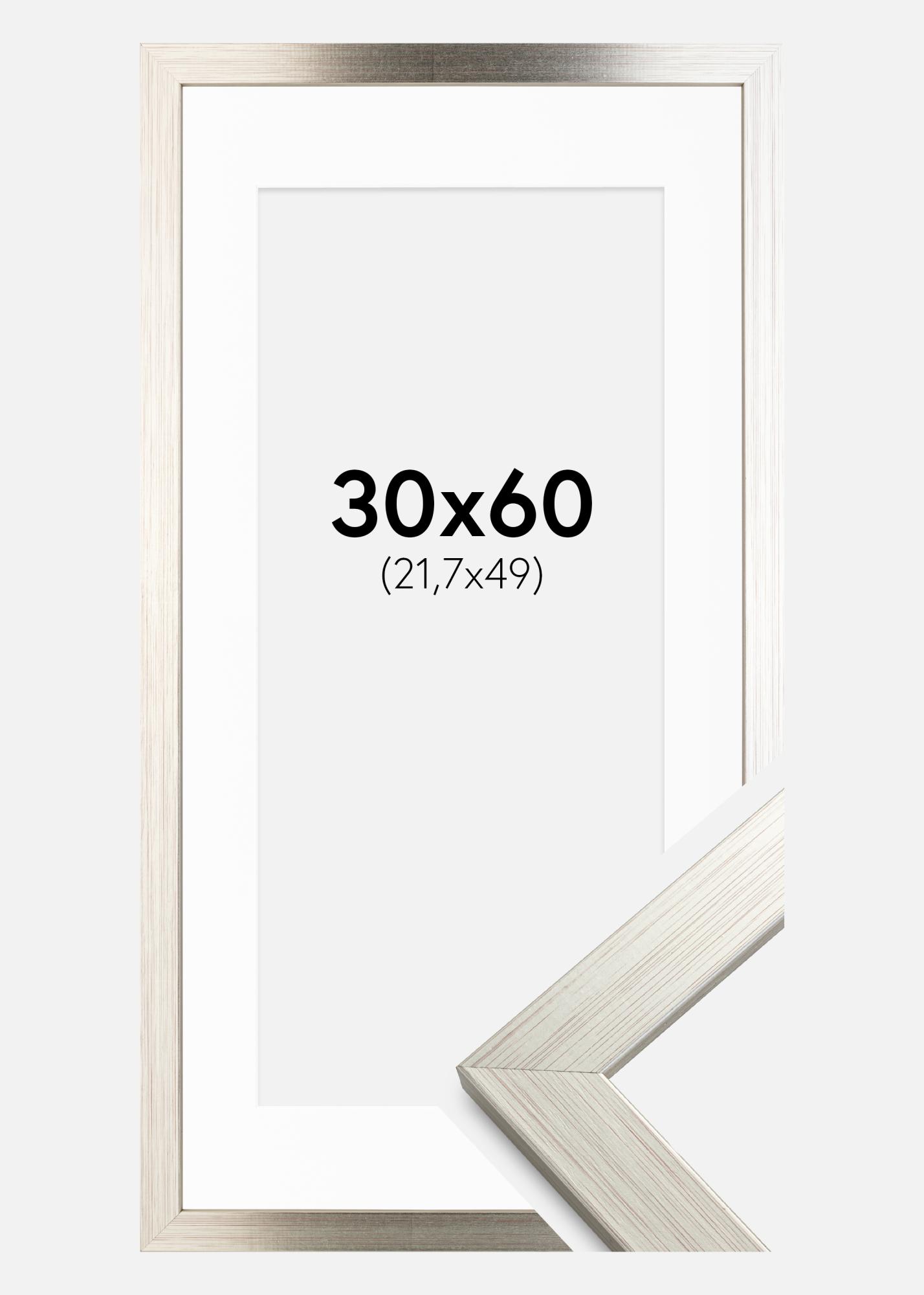Rahmen Silver Wood 30x60 cm - Passepartout Weiß 22,7x50 cm