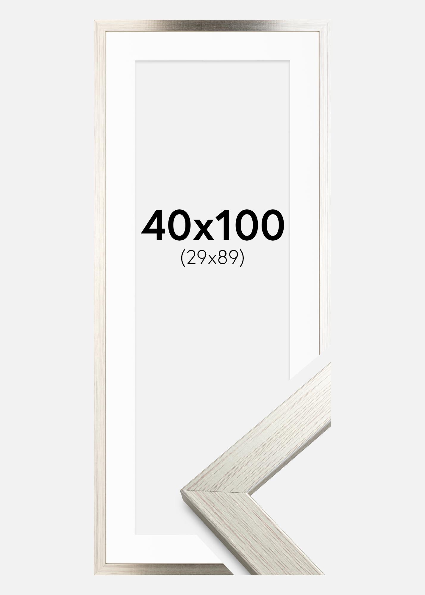 Rahmen Silver Wood 40x100 cm - Passepartout Weiß 30x90 cm