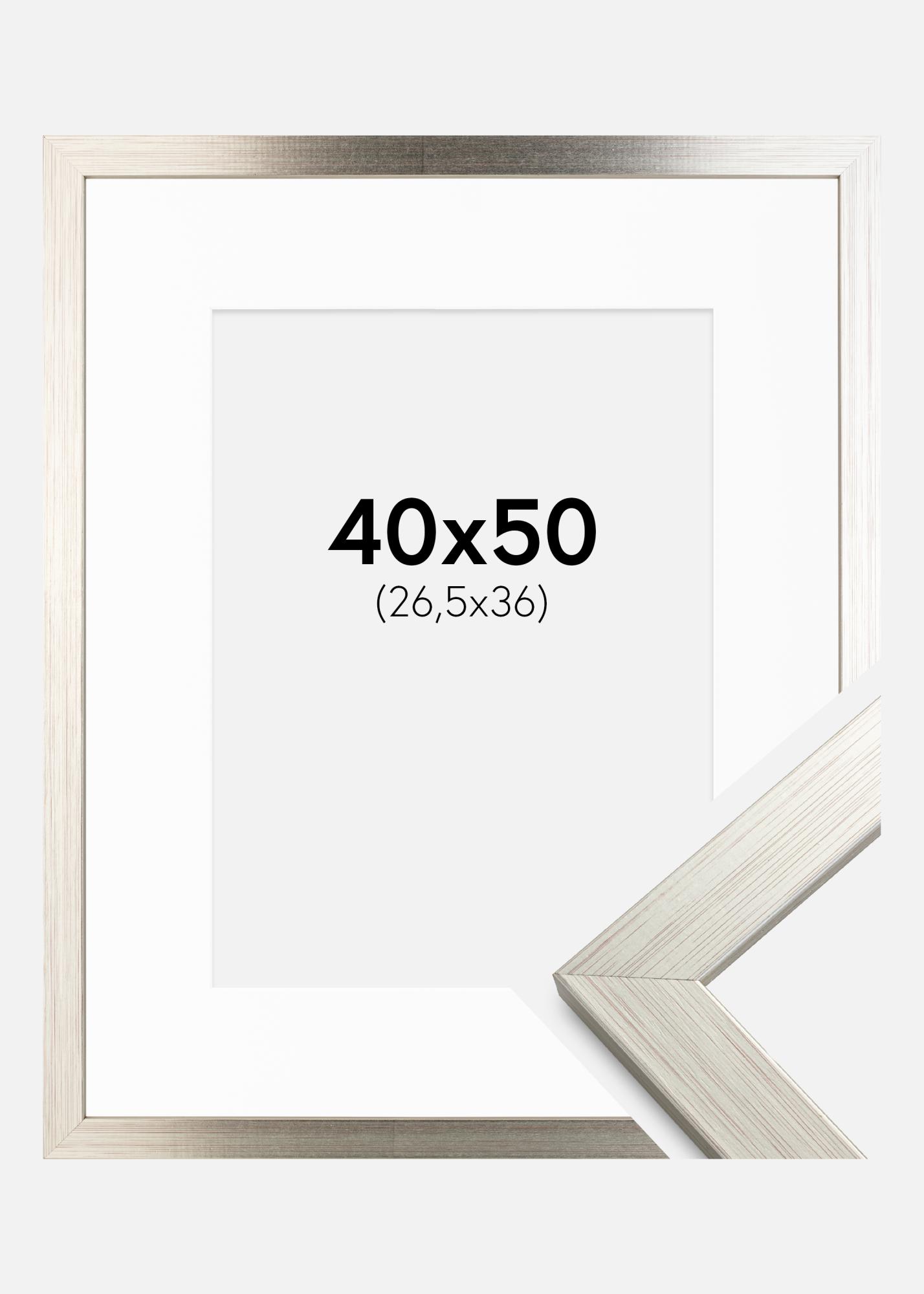 Rahmen Silver Wood 40x50 cm - Passepartout Weiß 27,5x37 cm