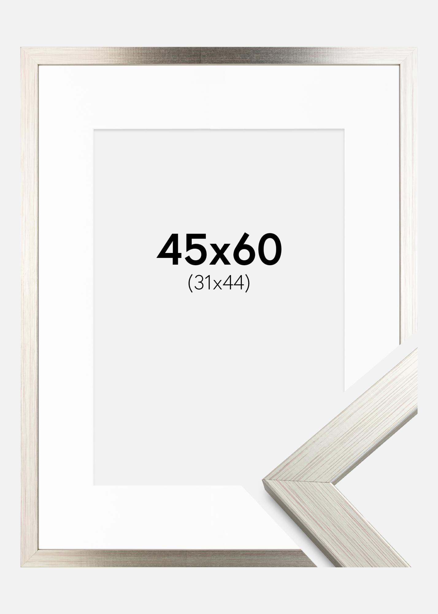 Rahmen Silver Wood 45x60 cm - Passepartout Weiß 32x45 cm