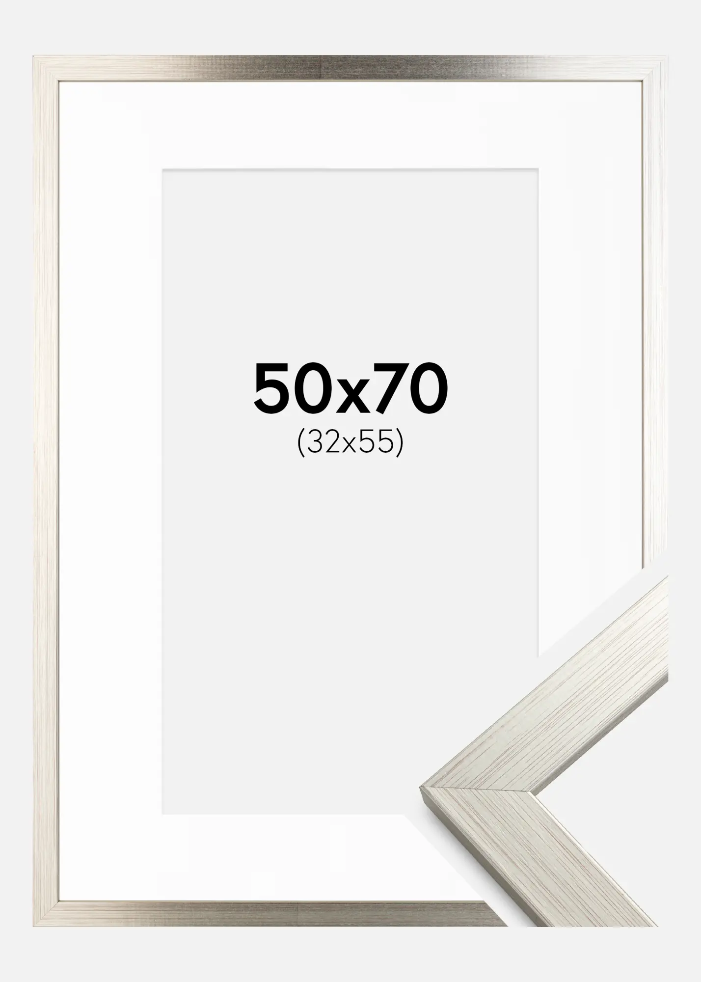 Rahmen Silver Wood 50x70 cm - Passepartout Weiß 33x56 cm