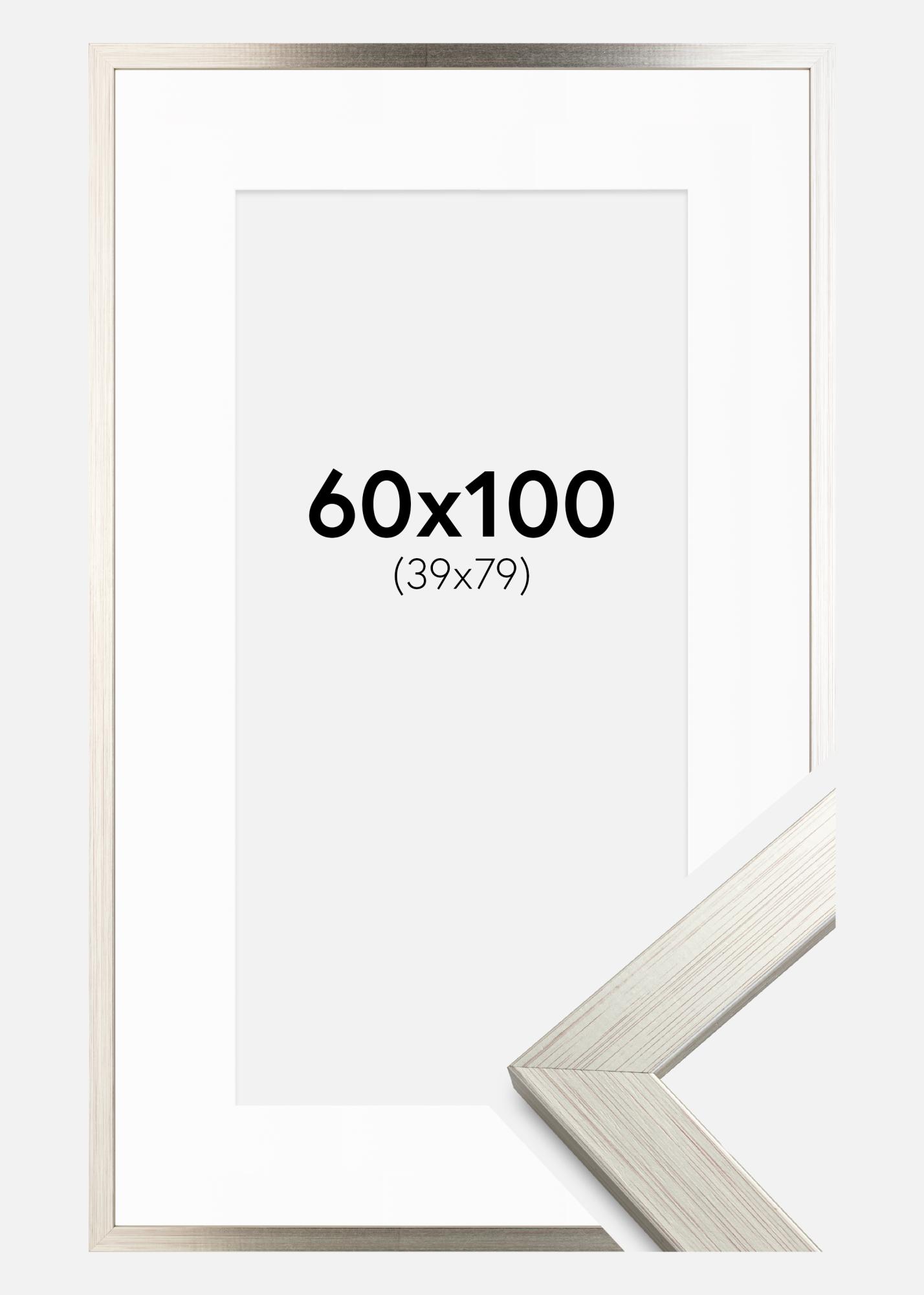 Rahmen Silver Wood 60x100 cm - Passepartout Weiß 40x80 cm