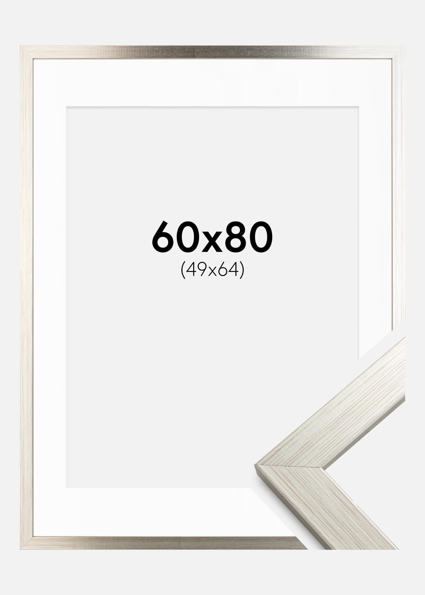 Rahmen Silver Wood 60x80 cm - Passepartout Weiß 50x65 cm