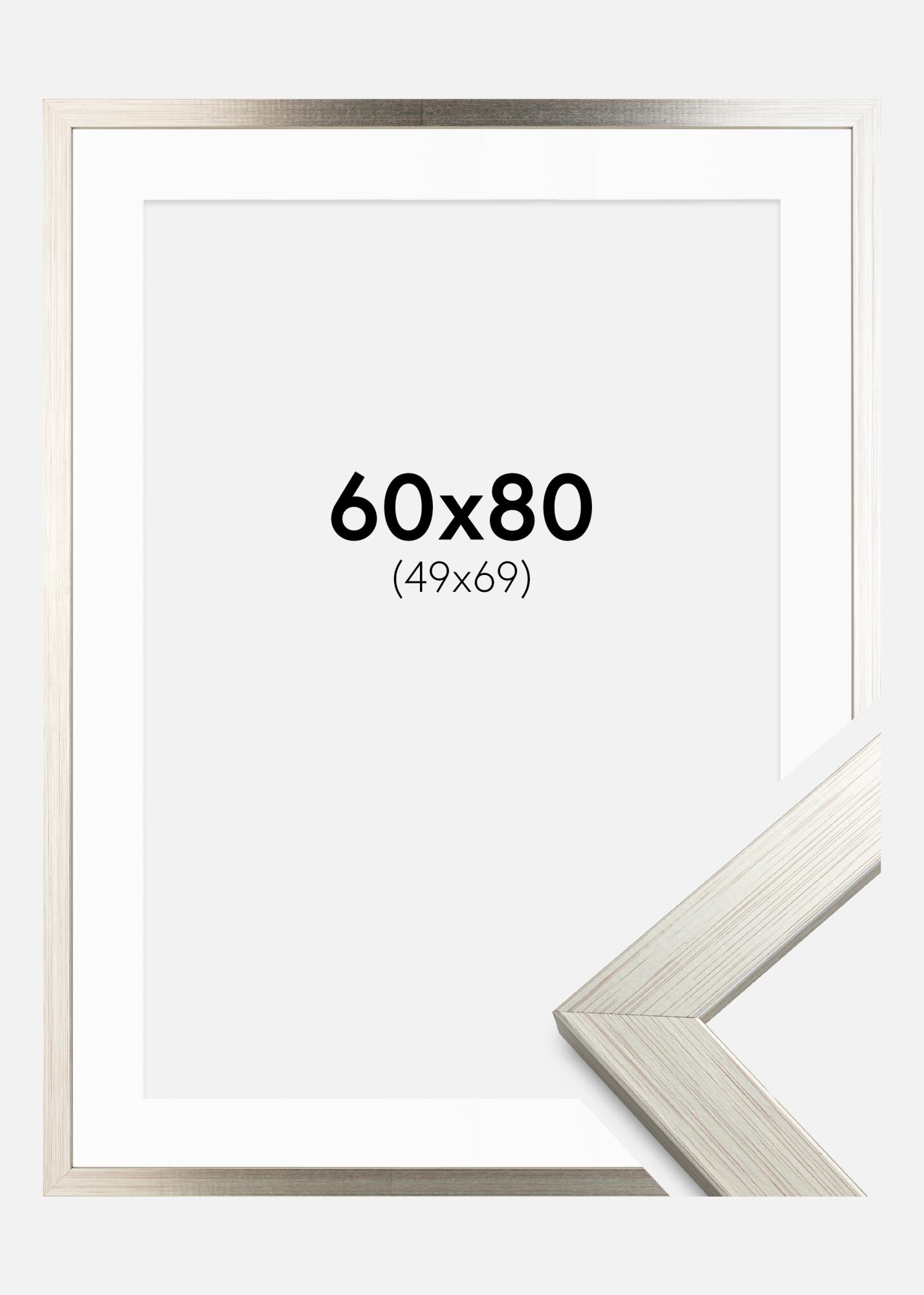 Rahmen Silver Wood 60x80 cm - Passepartout Weiß 50x70 cm