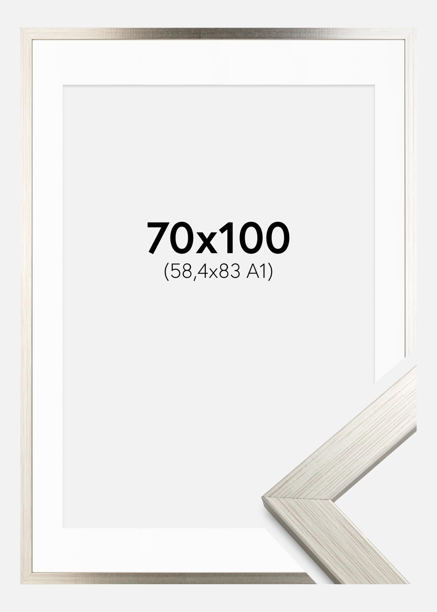 Rahmen Silver Wood 70x100 cm - Passepartout Weiß 59,4x84 cm (A1)